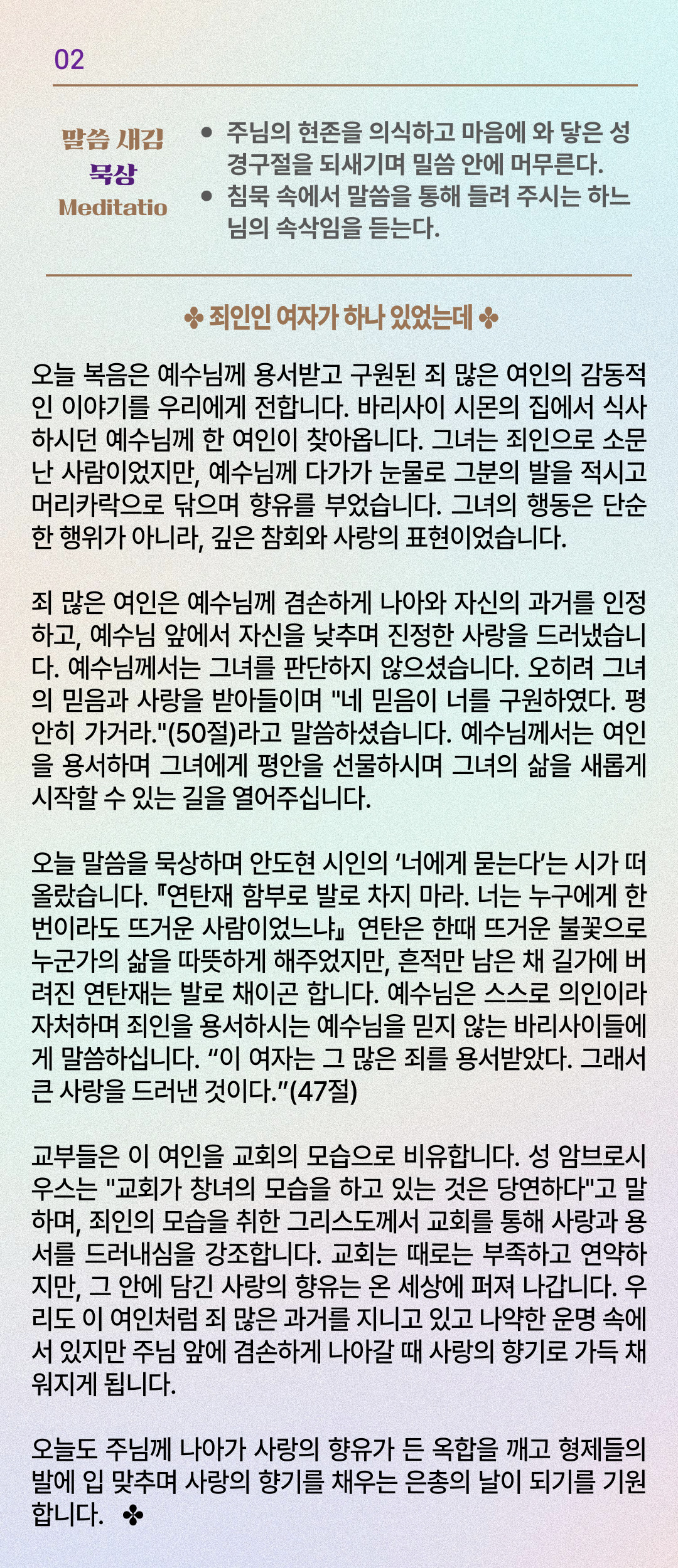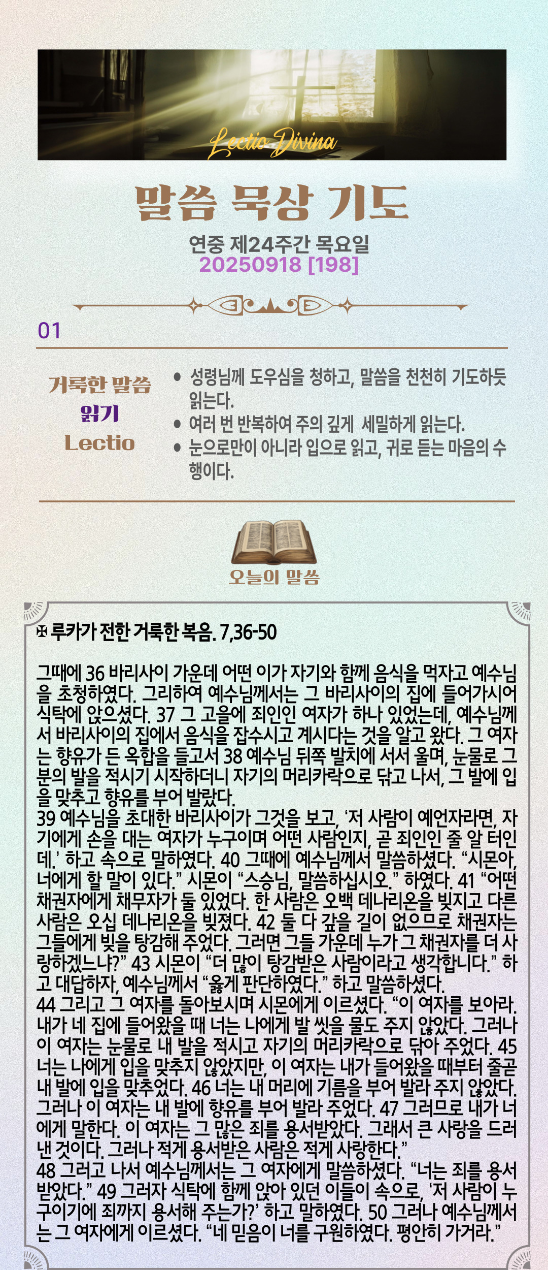 말씀묵상기도 LECTIO DIVINA [198] 20250918 연중 제24주간 목