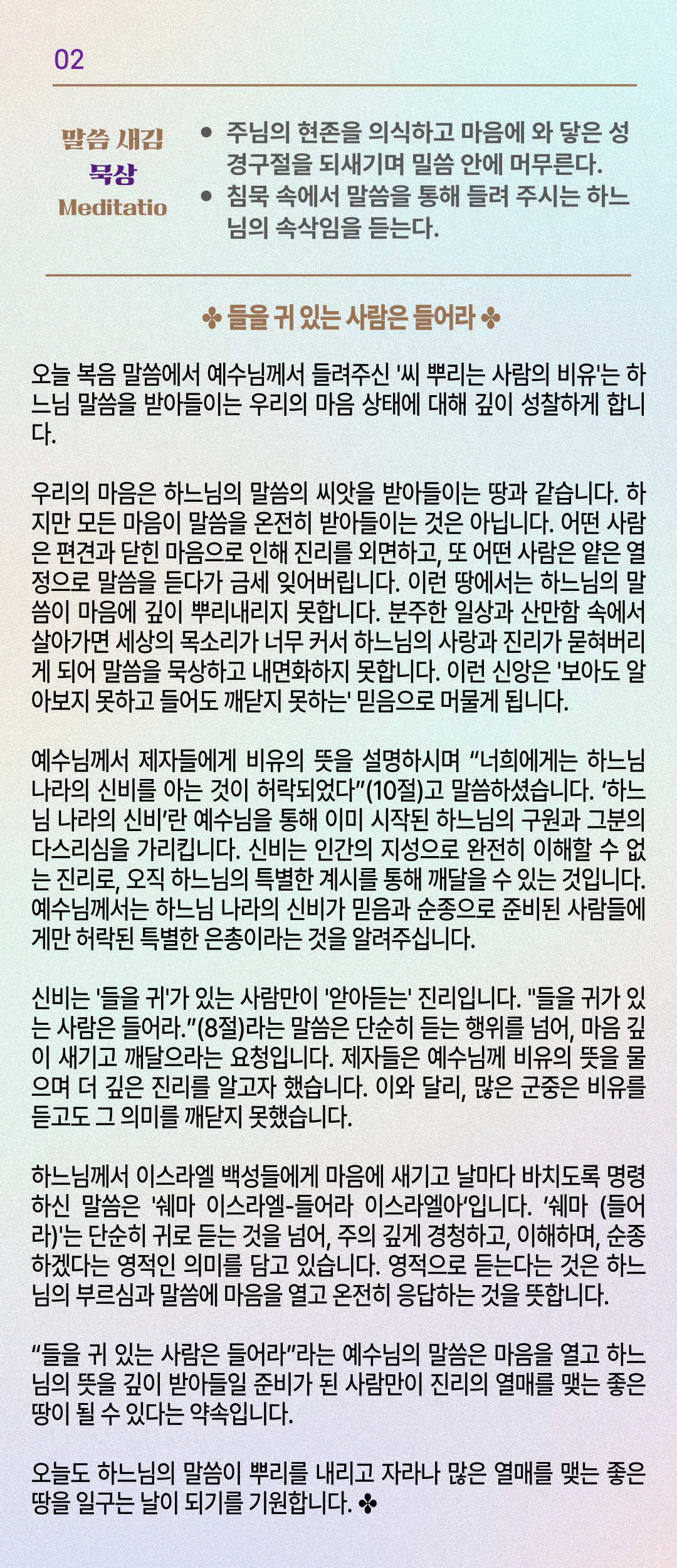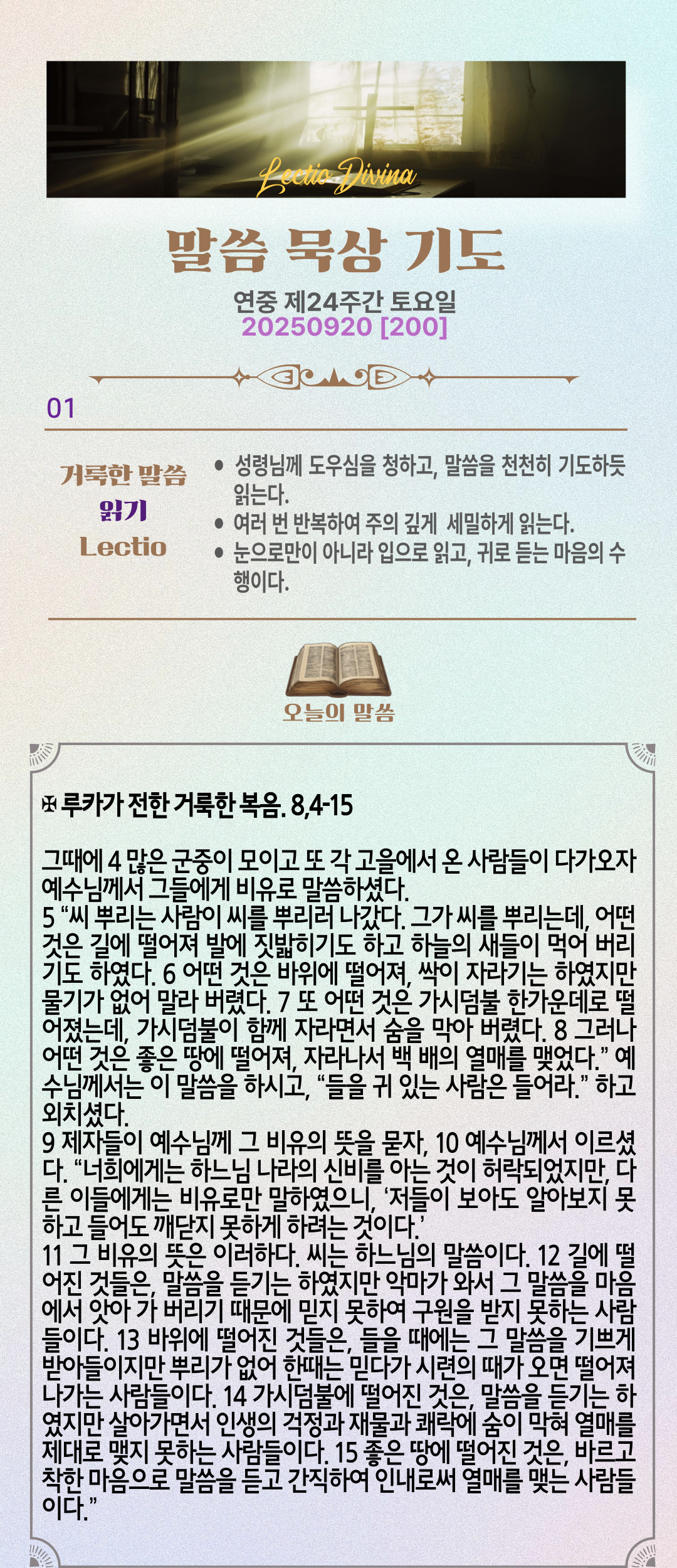 말씀묵상기도 LECTIO DIVINA [200] 20250920 연중 제24주간 토