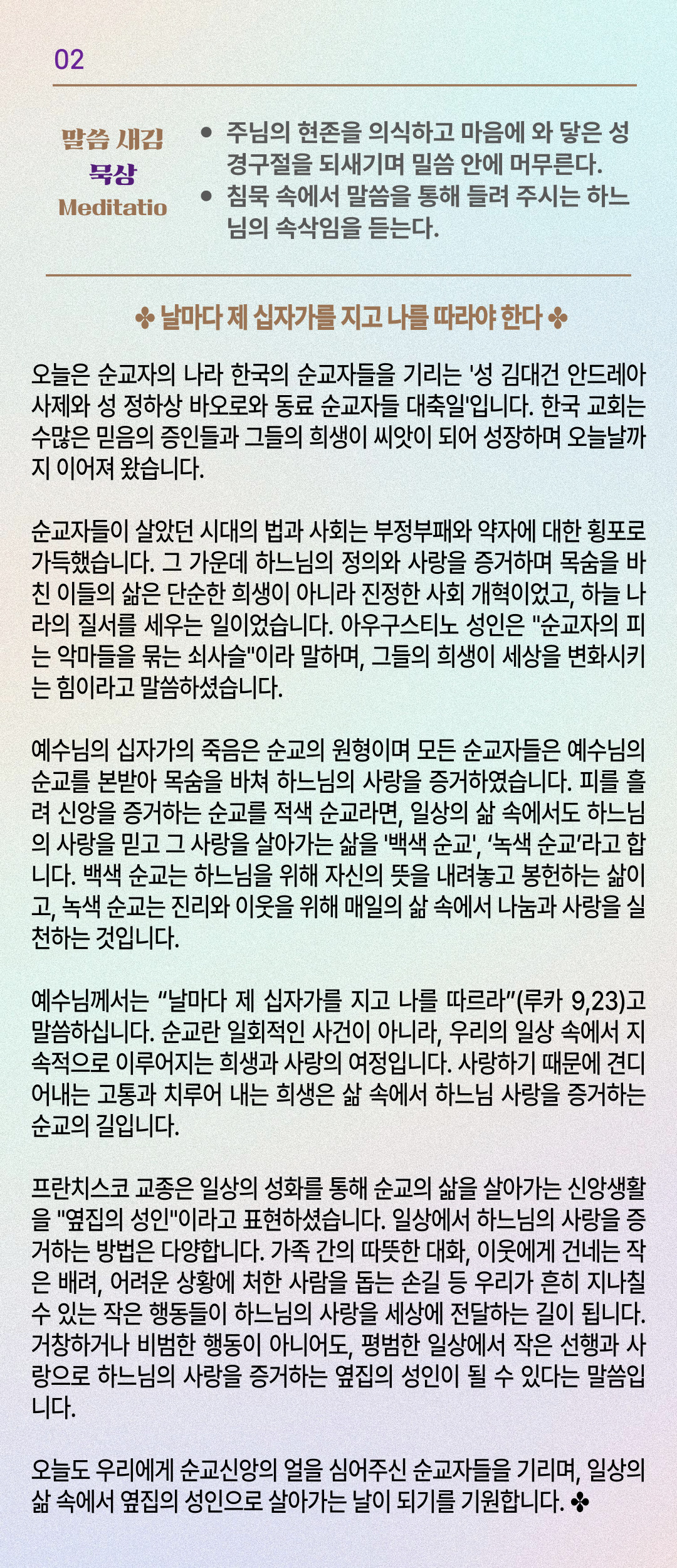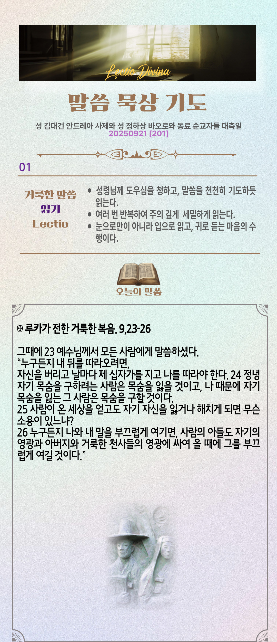 말씀묵상기도 LECTIO DIVINA [201] 20250921 성 김대건 안드레아와 정하상 바오로와 동료 순교자 대축일