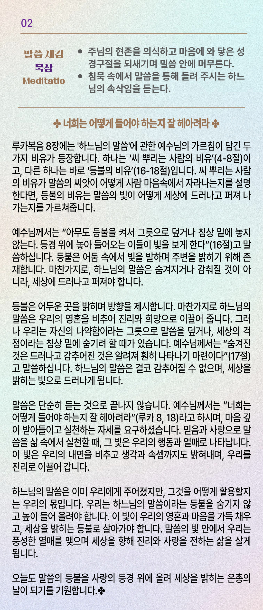 말씀묵상기도 LECTIO DIVINA [202] 20250922 연중 제25주간 월요일