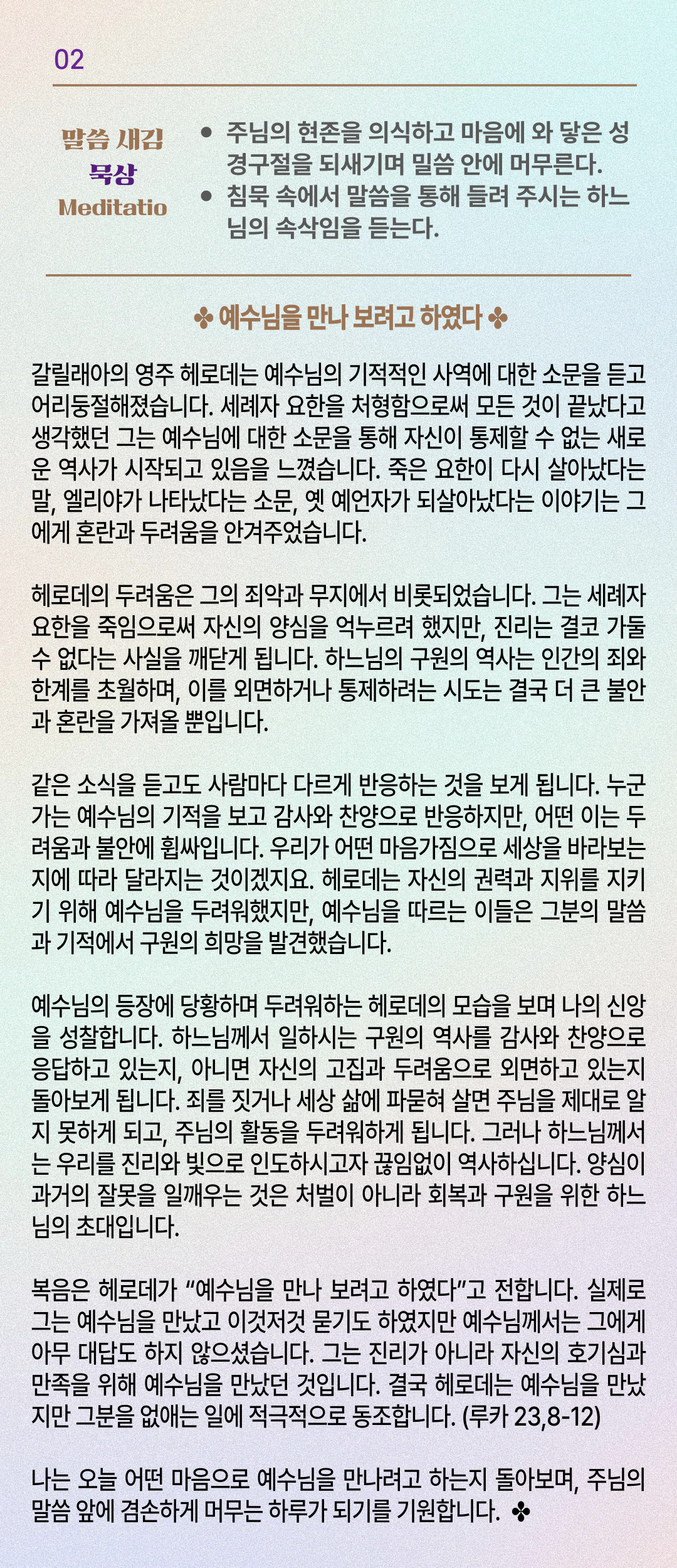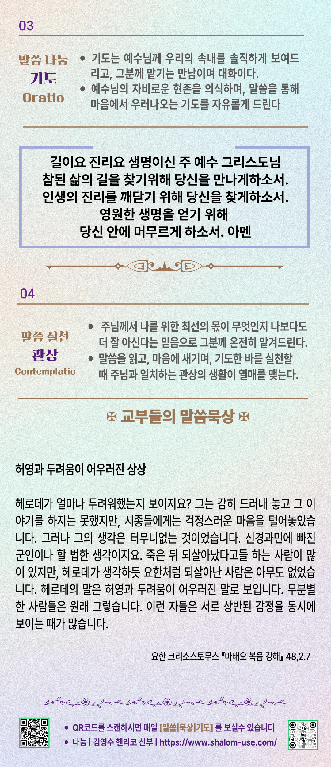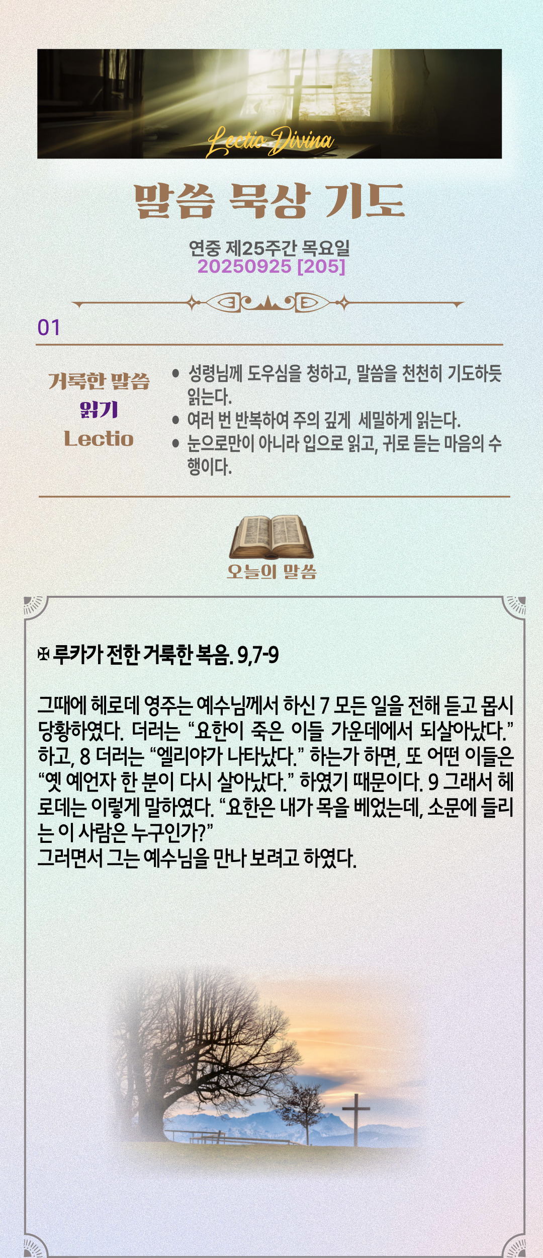 말씀묵상기도 LECTIO DIVINA [205] 20250925 연중 제25주간 목요일