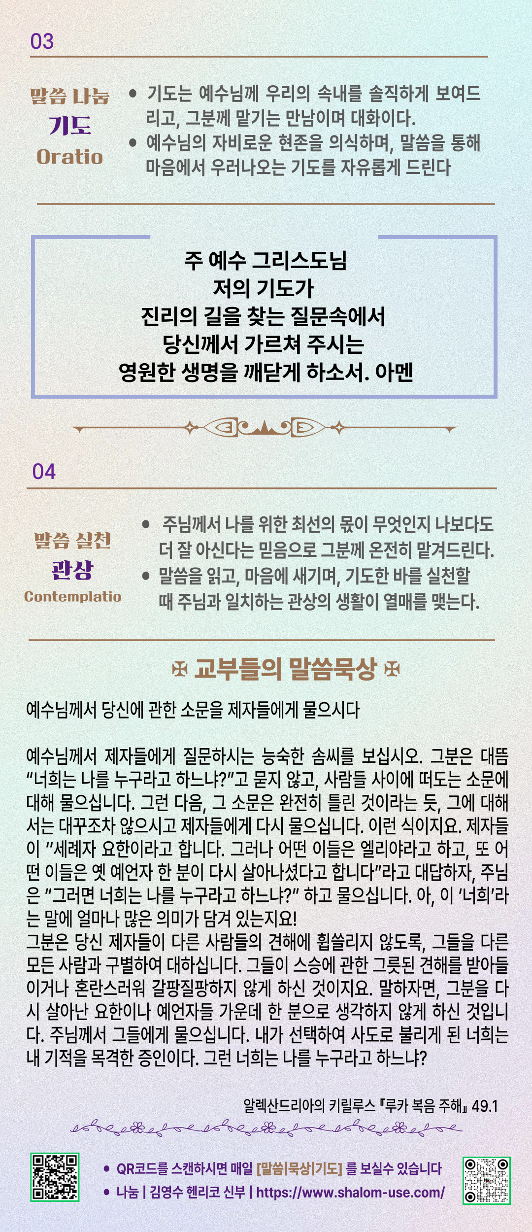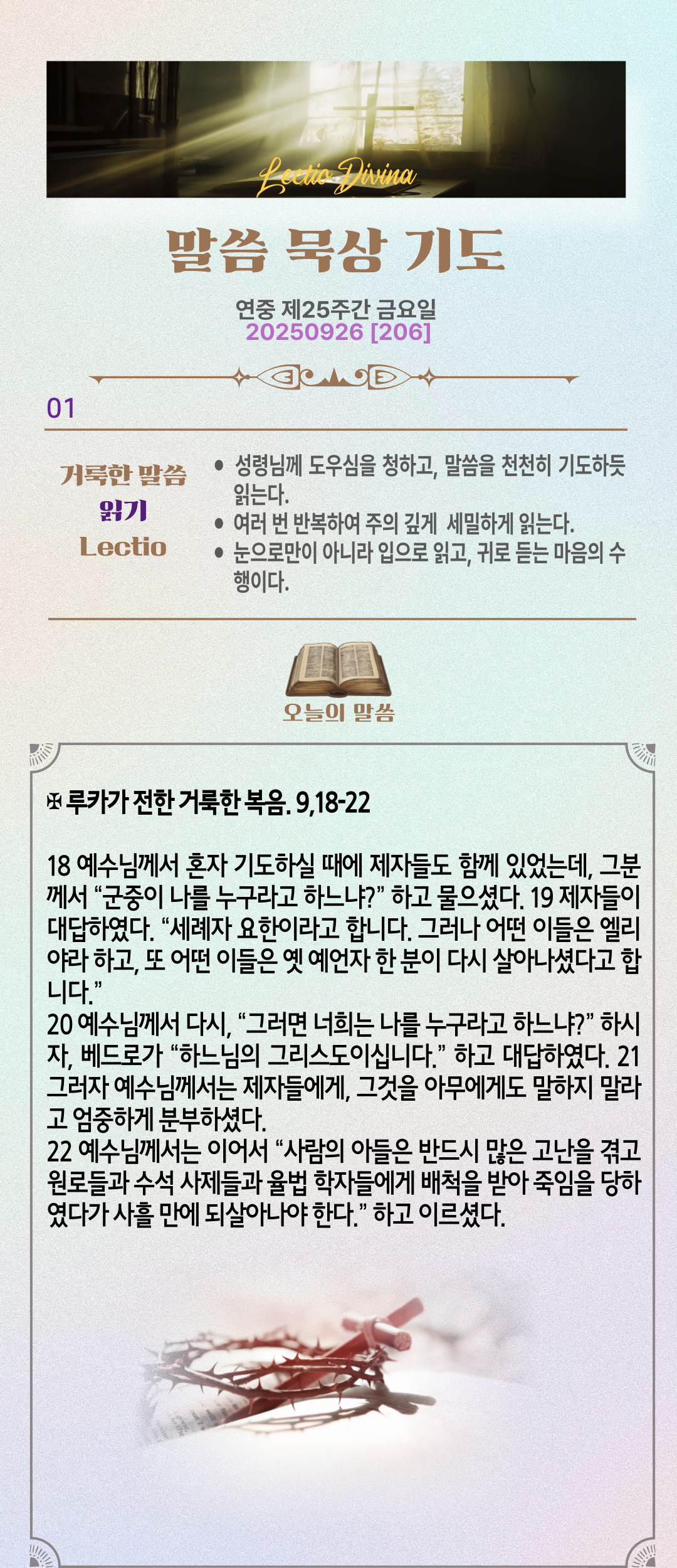 말씀묵상기도 LECTIO DIVINA [206] 연중 제25주간 금요일