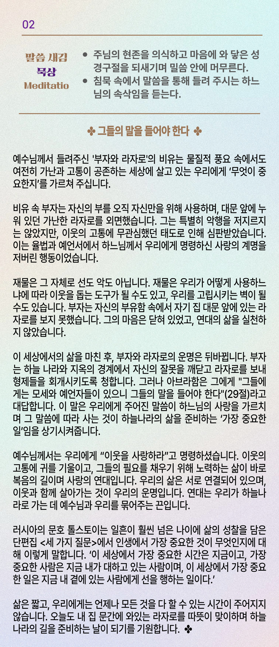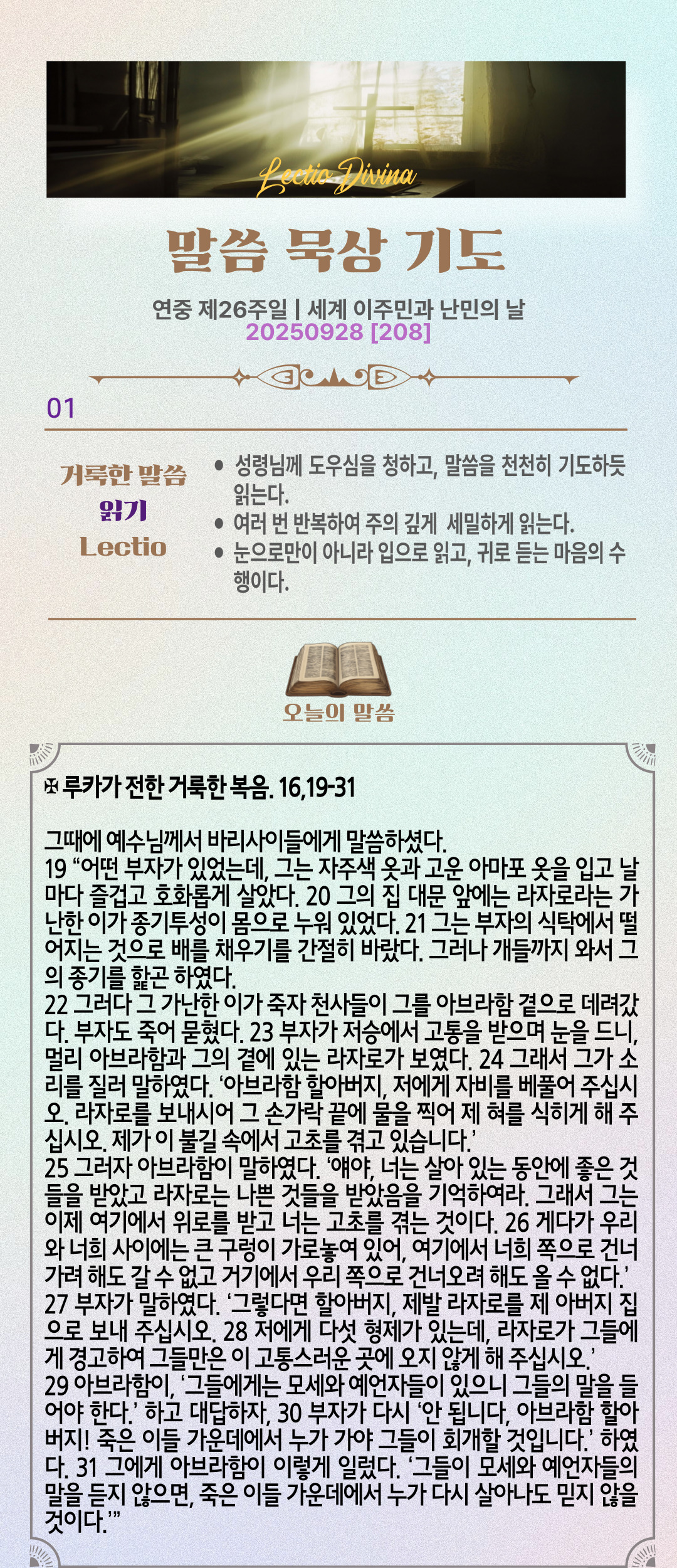 말씀묵상기도 LECTIO DIVINA [208] 20250928 연중 제26주일 | 세계 이주민과 난민의 날