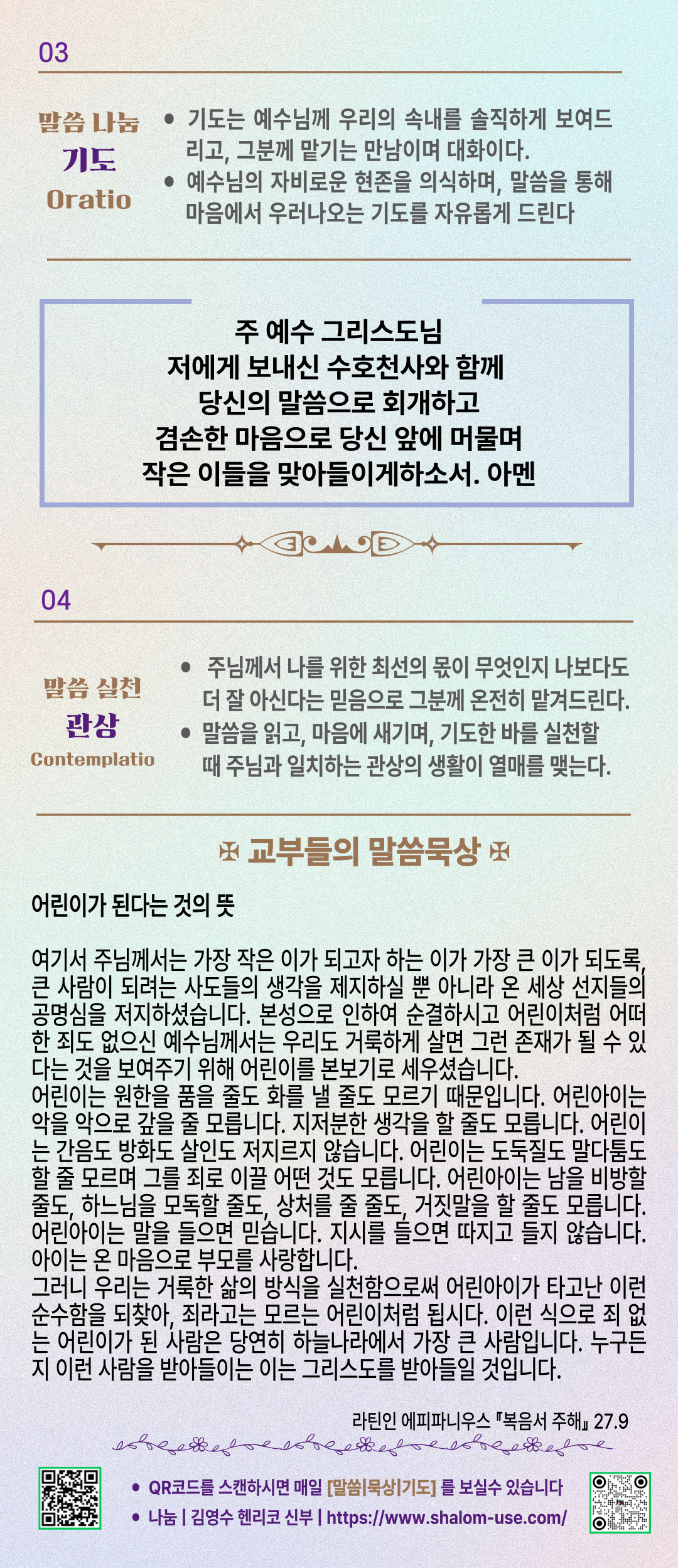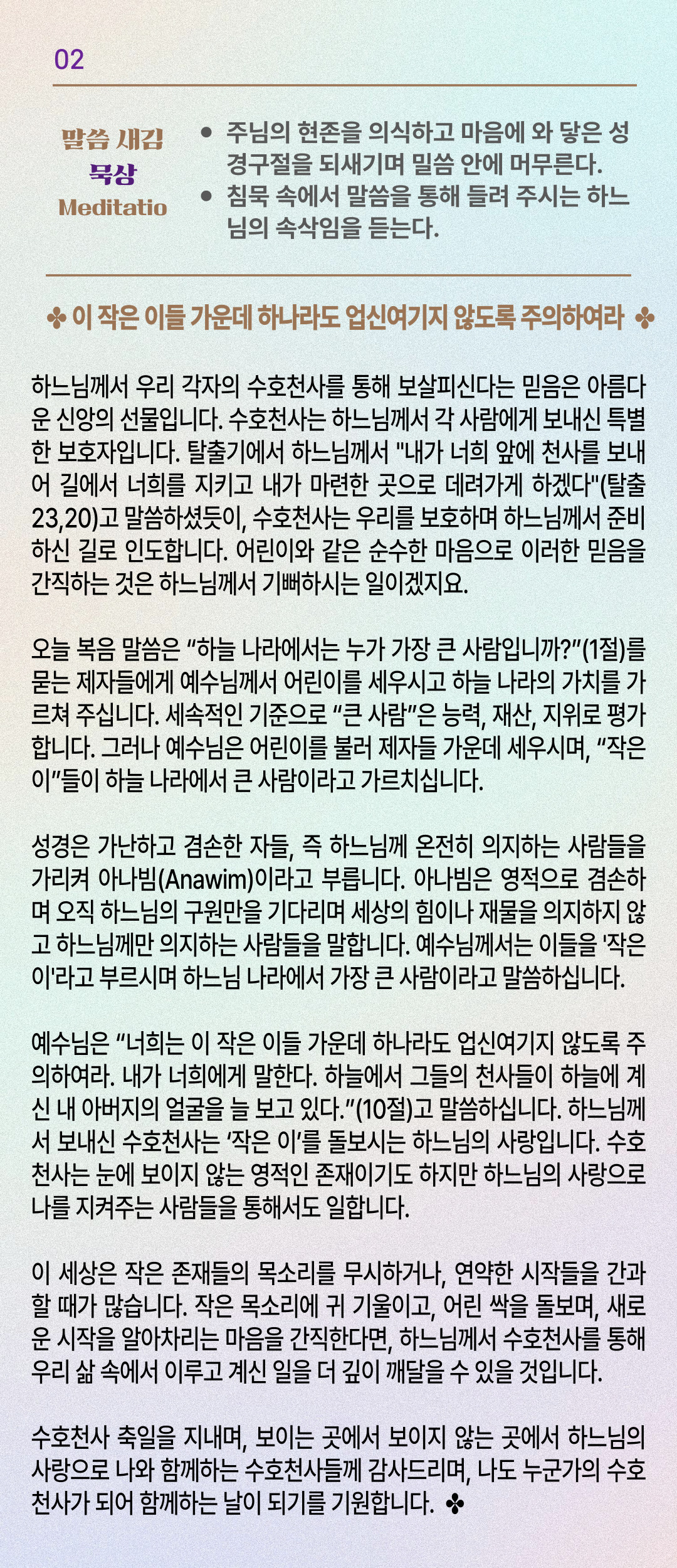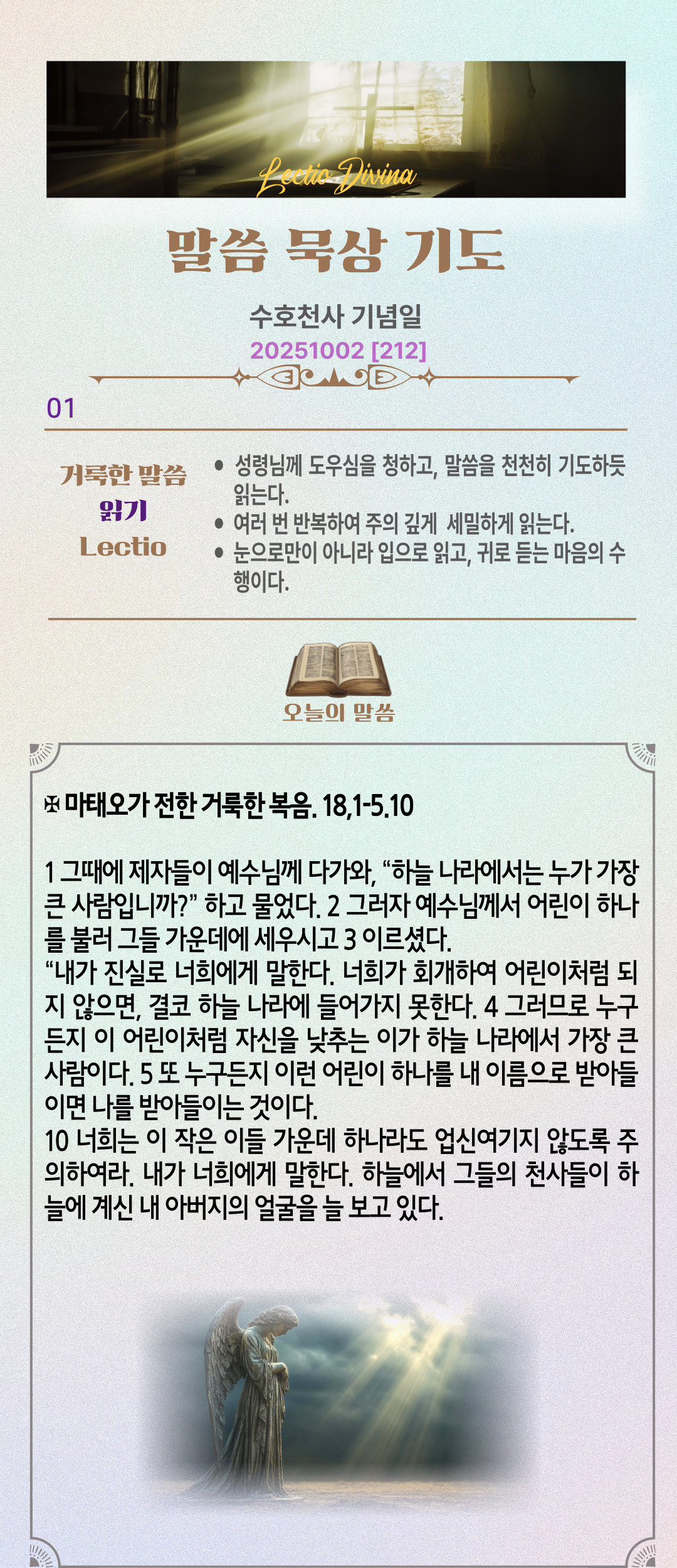 말씀묵상기도 LECTIO DIVINA [212] 20251002 수호천사 기념일