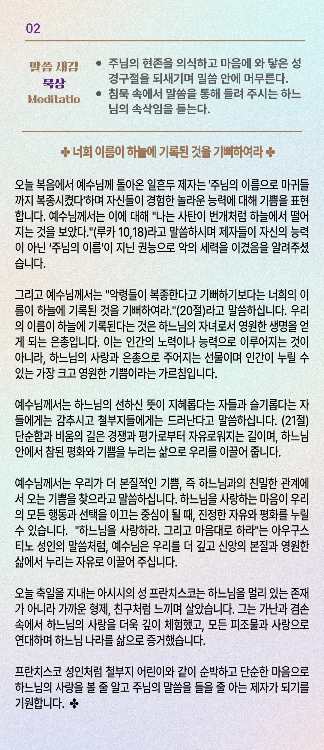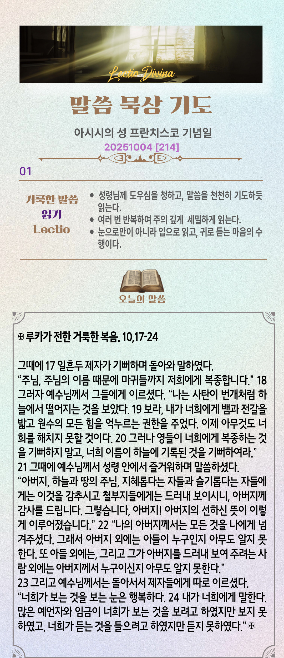 말씀묵상기도 LECTIO DIVINA [214] 20251004 아시시의 성 프란치스코 기념일