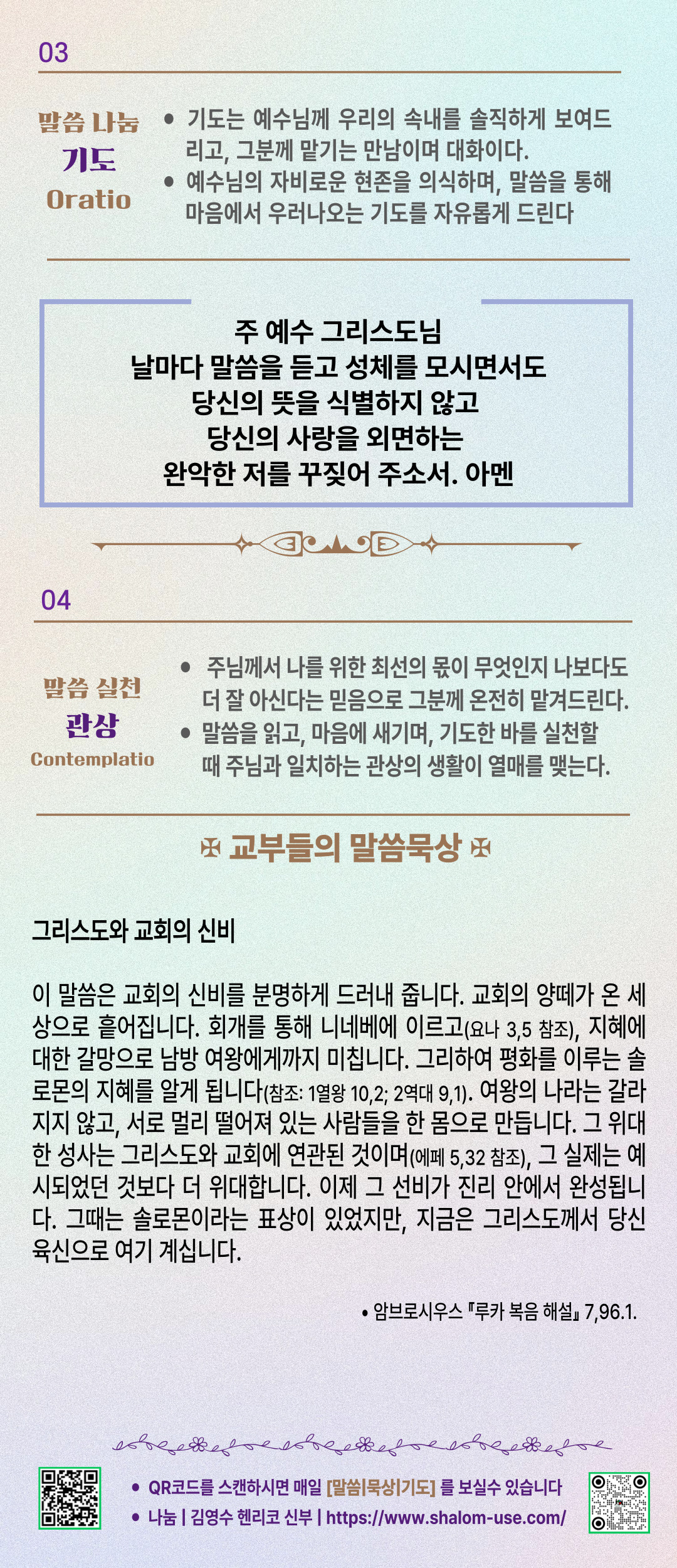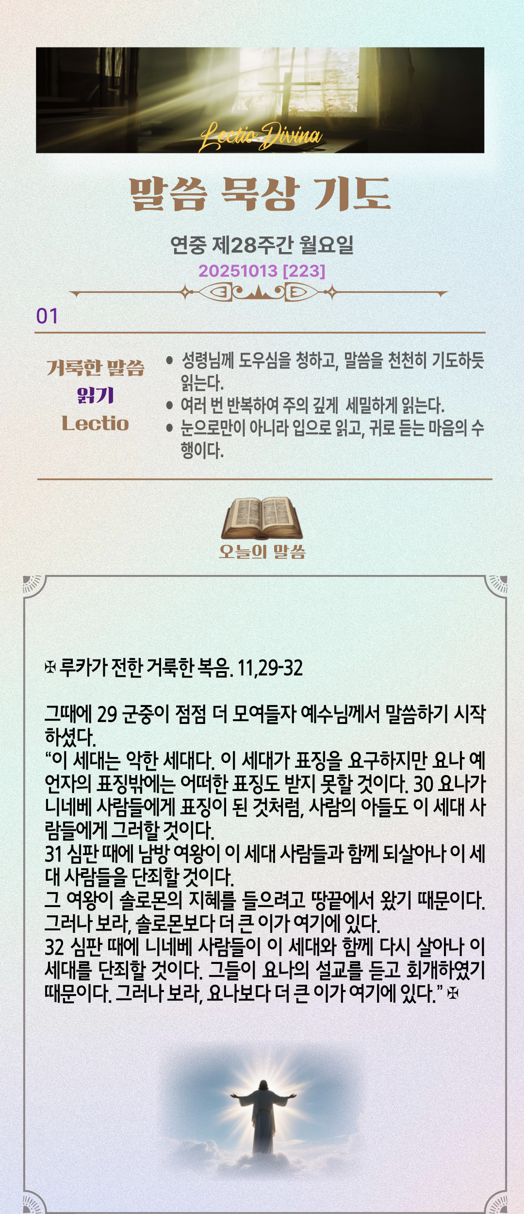 말씀묵상기도 LECTIO DIVINA [223] 20251013 연중 제28주간 월요일