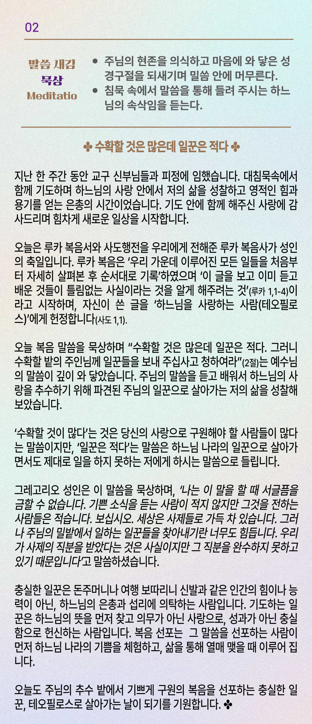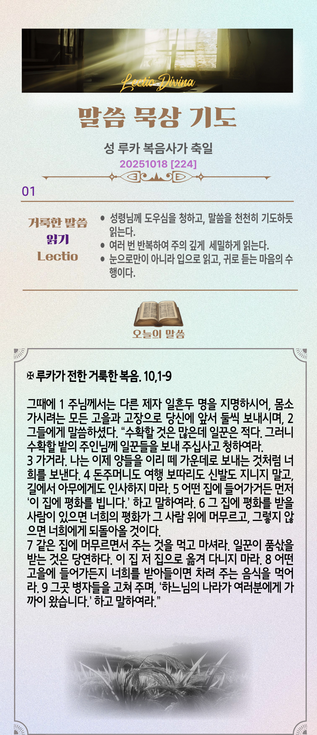 말씀묵상기도 LECTIO DIVINA [224] 20251018 성 루카 복음 사가 축일