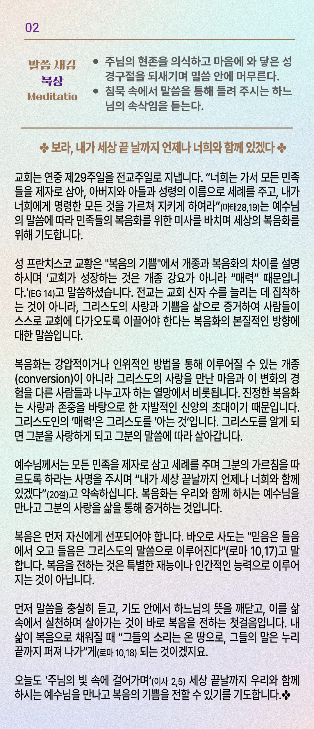 말씀묵상기도 LECTIO DIVINA [225] 20251019 연중 제29주일 | 전교주일