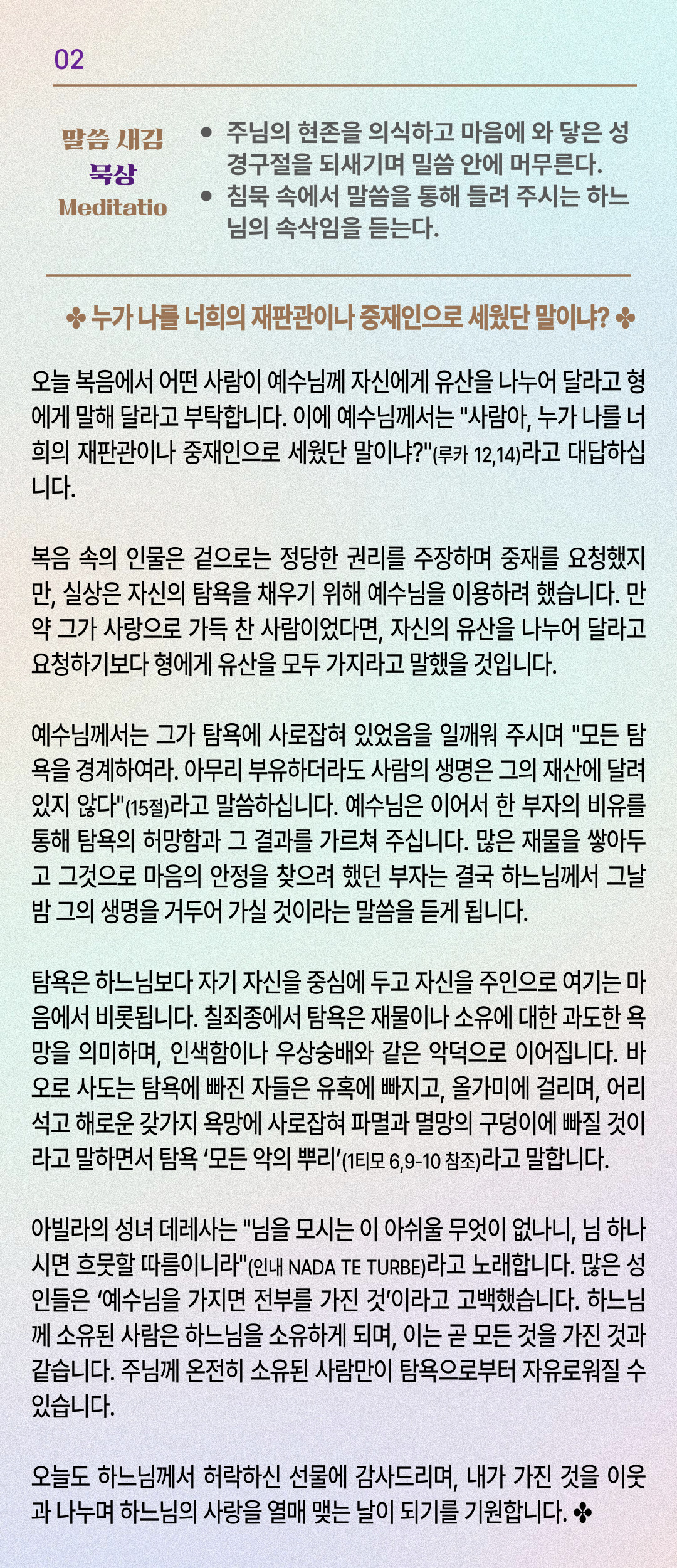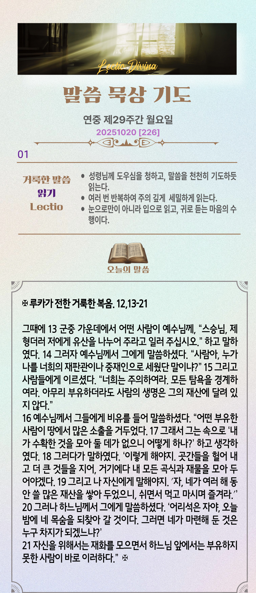 말씀묵상기도 LECTIO DIVINA [226] 2251020 연중 제29주간 월요일