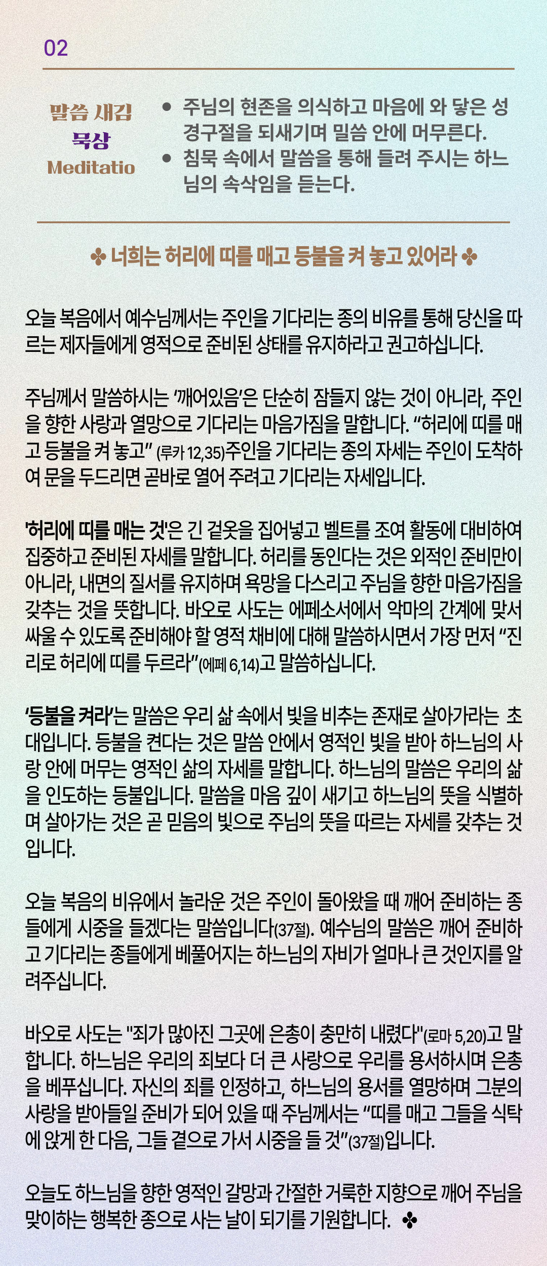 말씀묵상기도 LECTIO DIVINA [227] 20251021 연중 제29주간 화요일