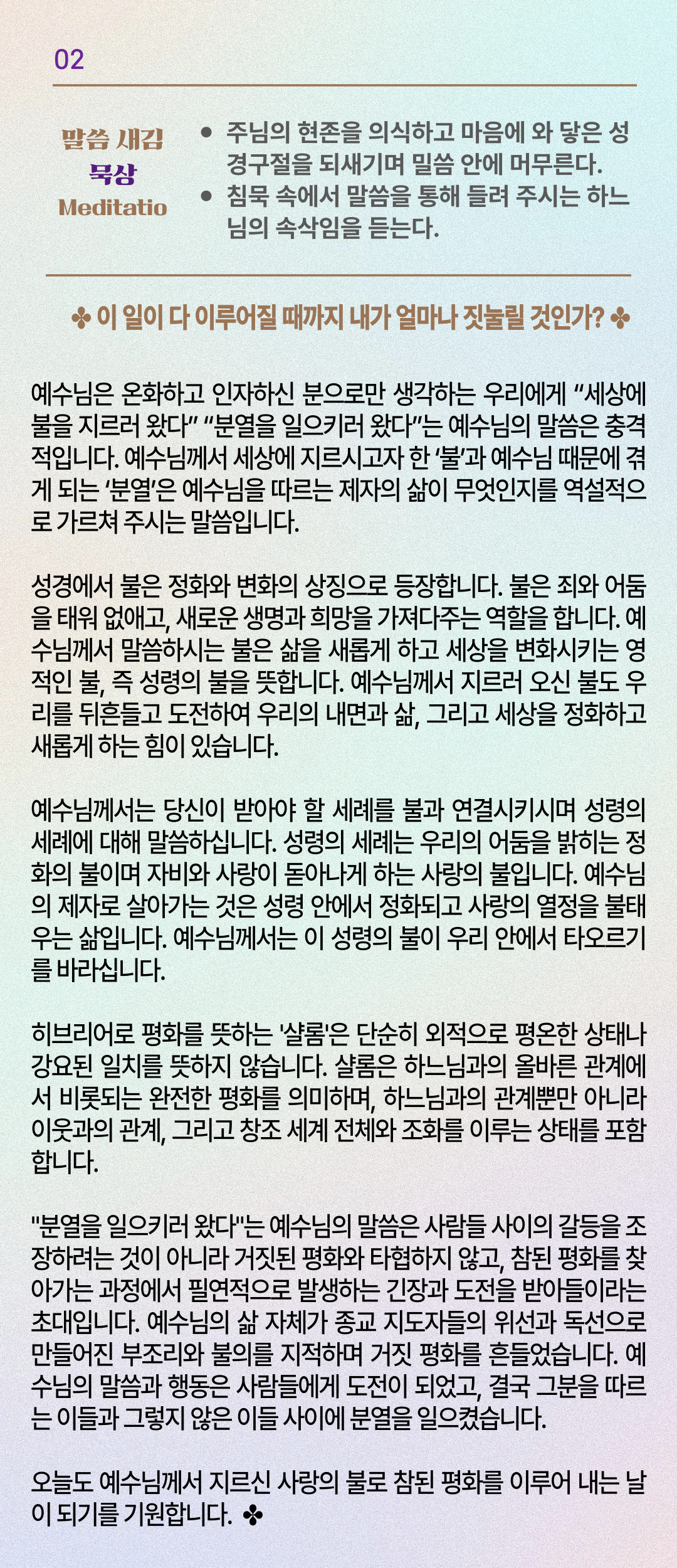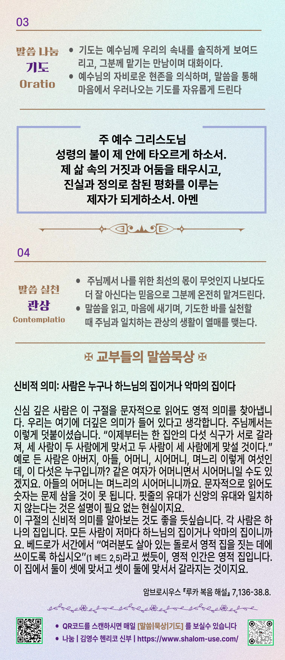 말씀묵상기도 LECTIO DIVINA [229] 20251023 연중 제29주간 목요일