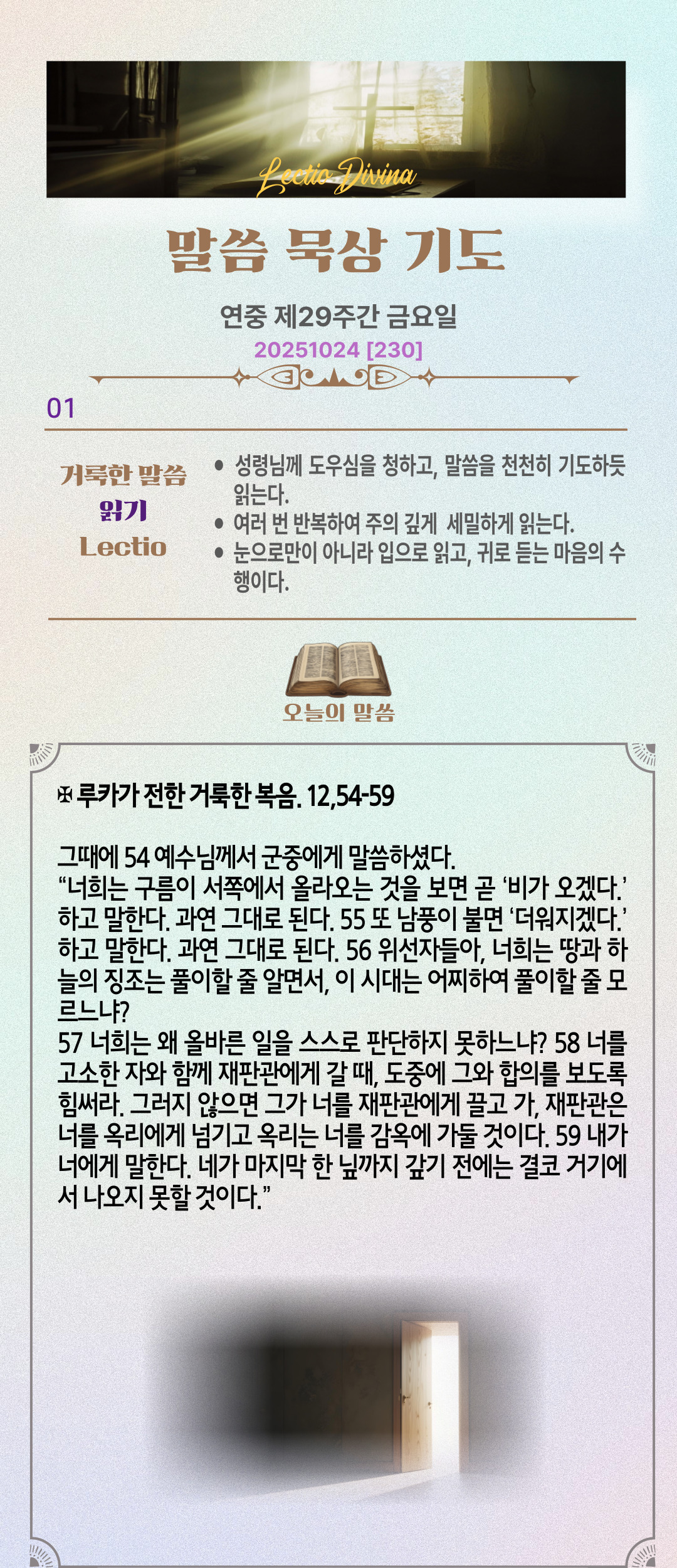 말씀묵상기도 LECTIO DIVINA [230] 20251024 연중 제29주간 금요일