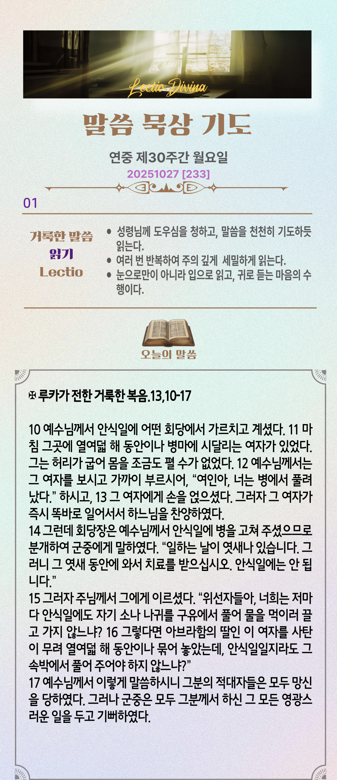 말씀묵상기도 LECTIO DIVINA [233] 연중 제30주간 월요일