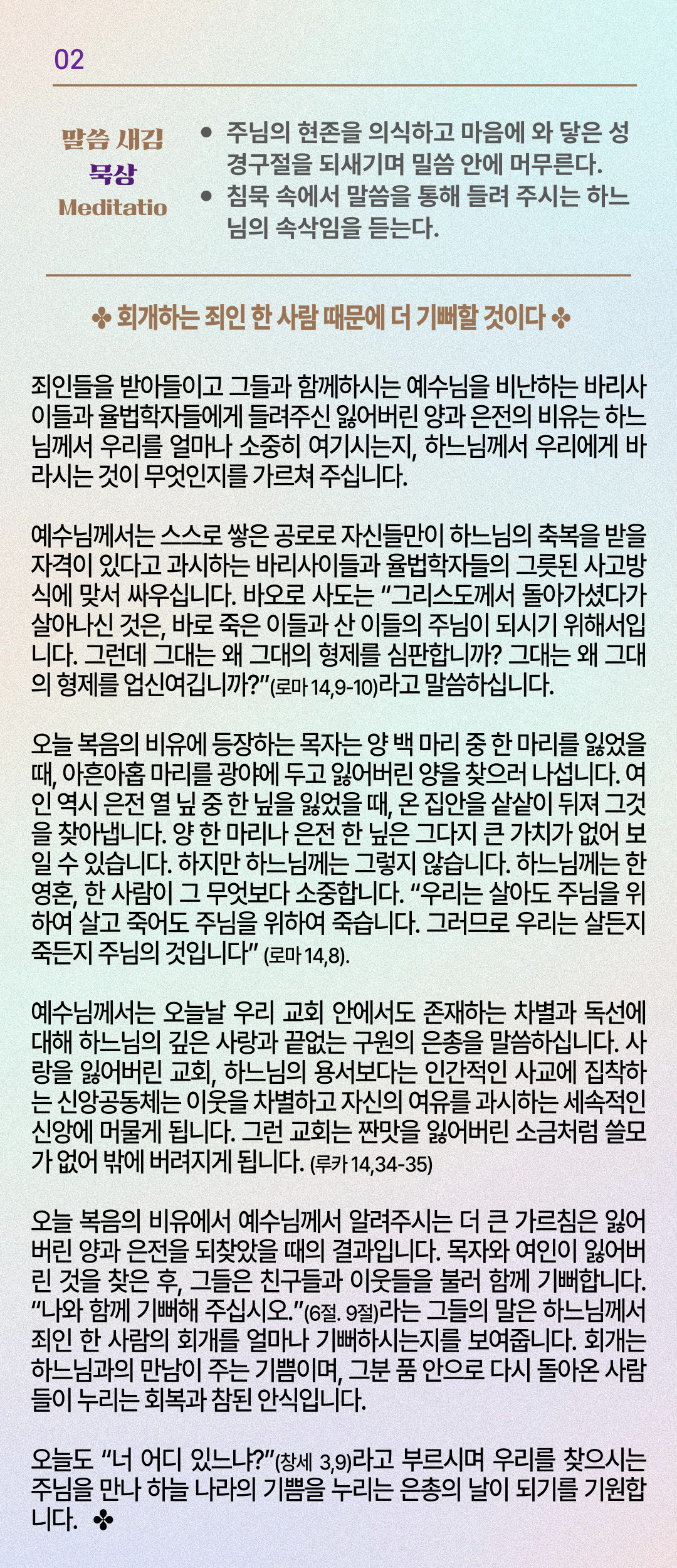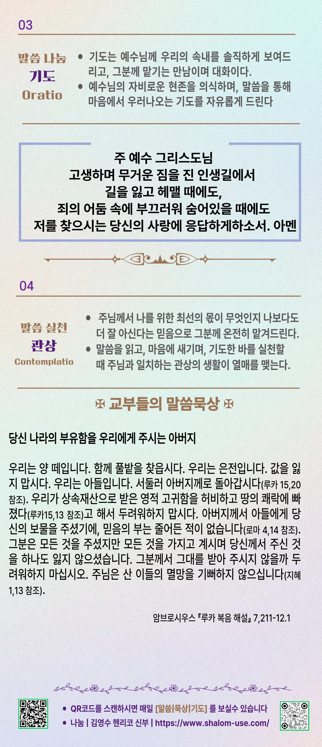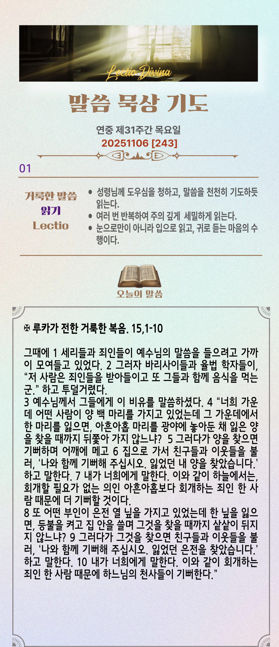 말씀묵상기도 LECTIO DIVINA [243] 20251106 연중 제31주간 목요일