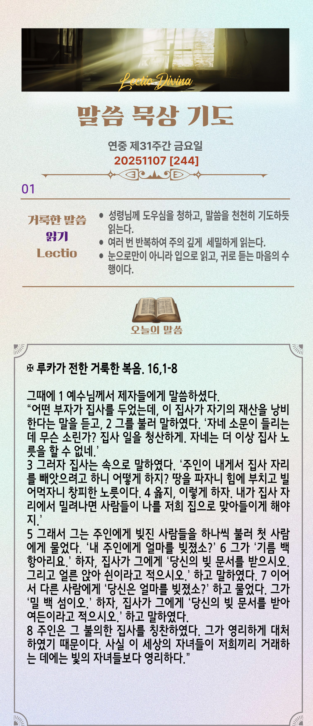 말씀묵상기도 LECTIO DIVINA [244] 20251107 연중 제31주간 금요일