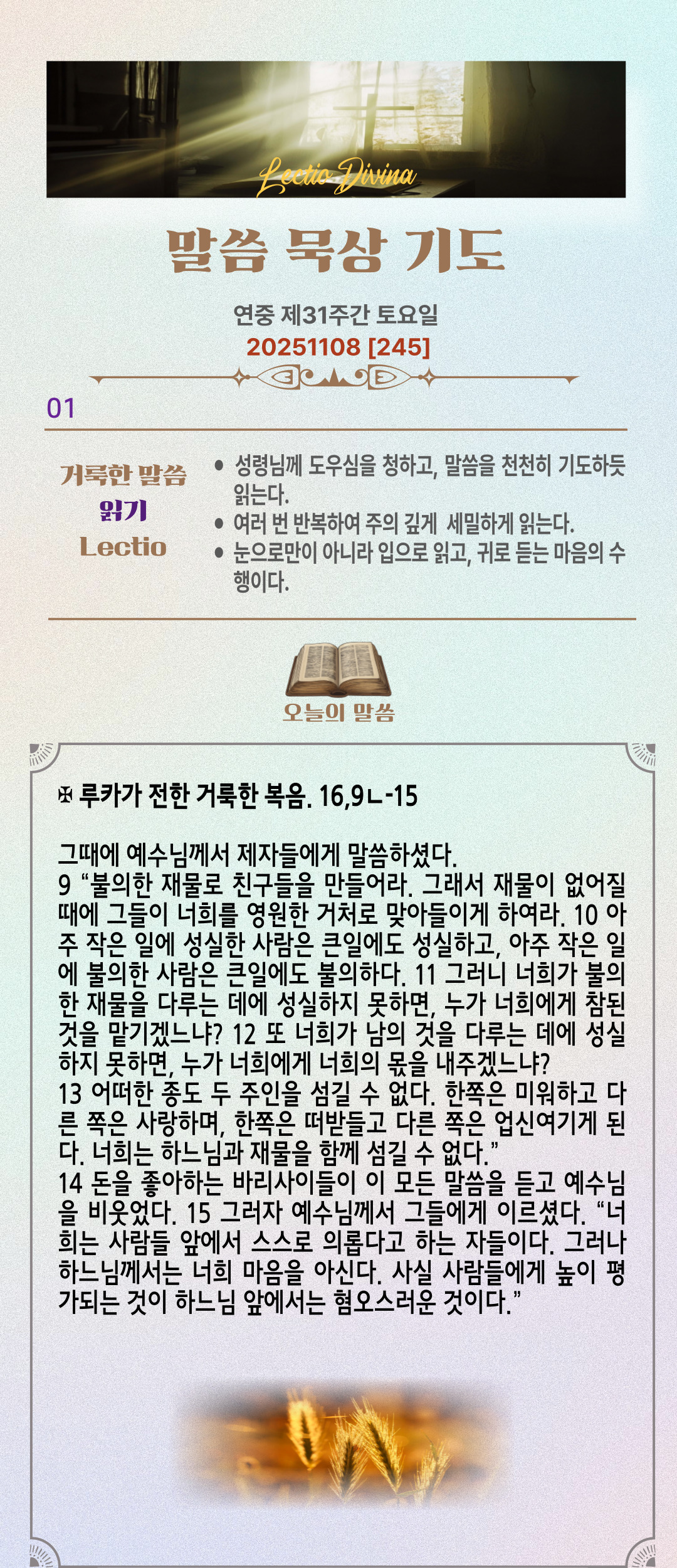 말씀묵상기도 LECTIO DIVINA [245] 20251108 연중 제31주간 토요일
