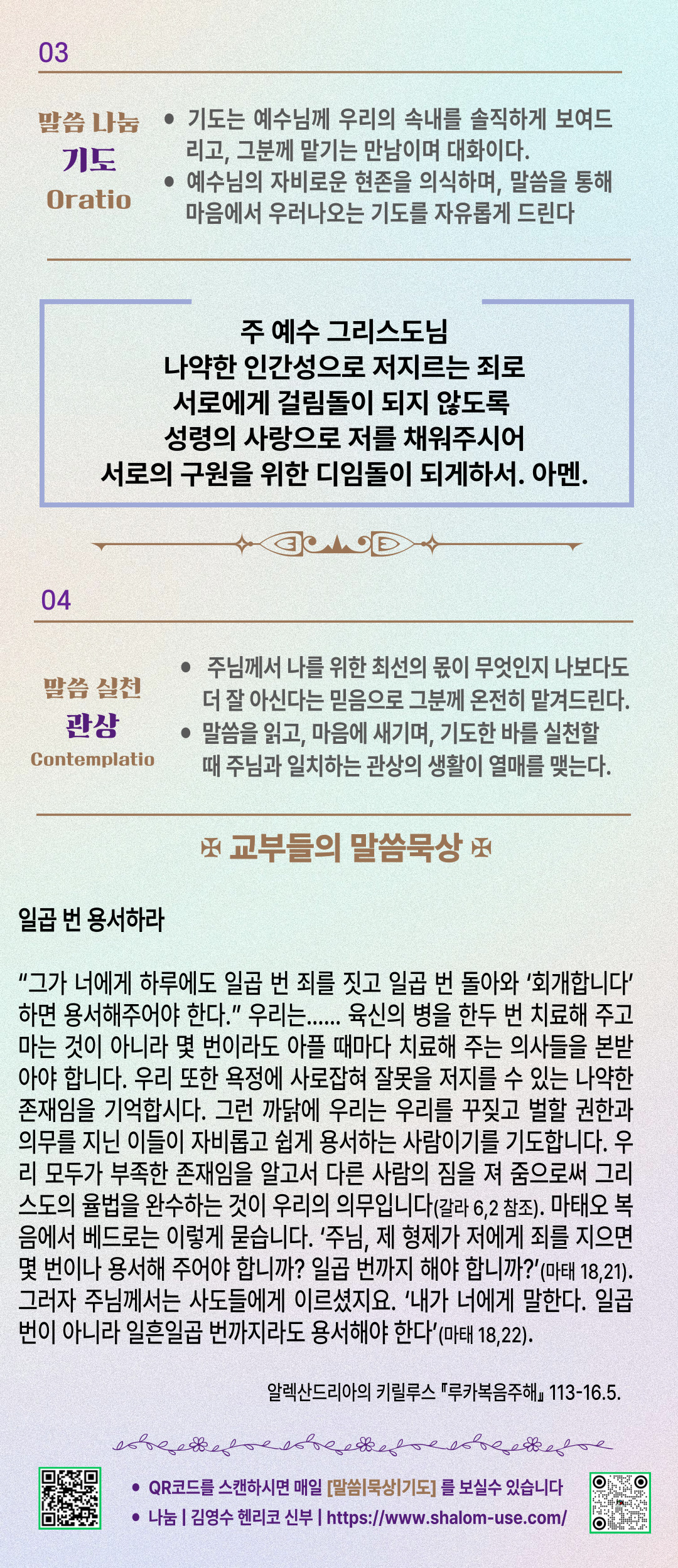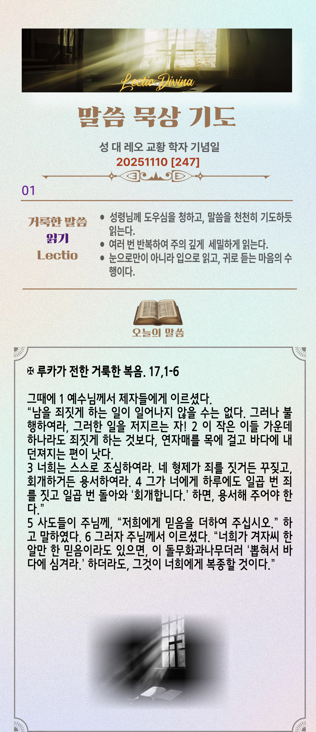 말씀묵상기도 LECTIO DIVINA [247] 20251110 성 대 레오 교황 학자 기념일 | 연중 제32주간 월
