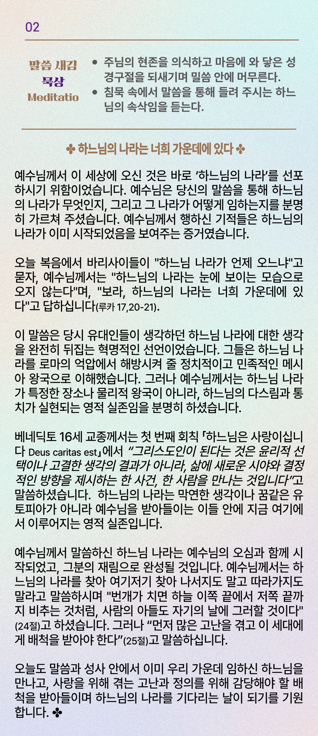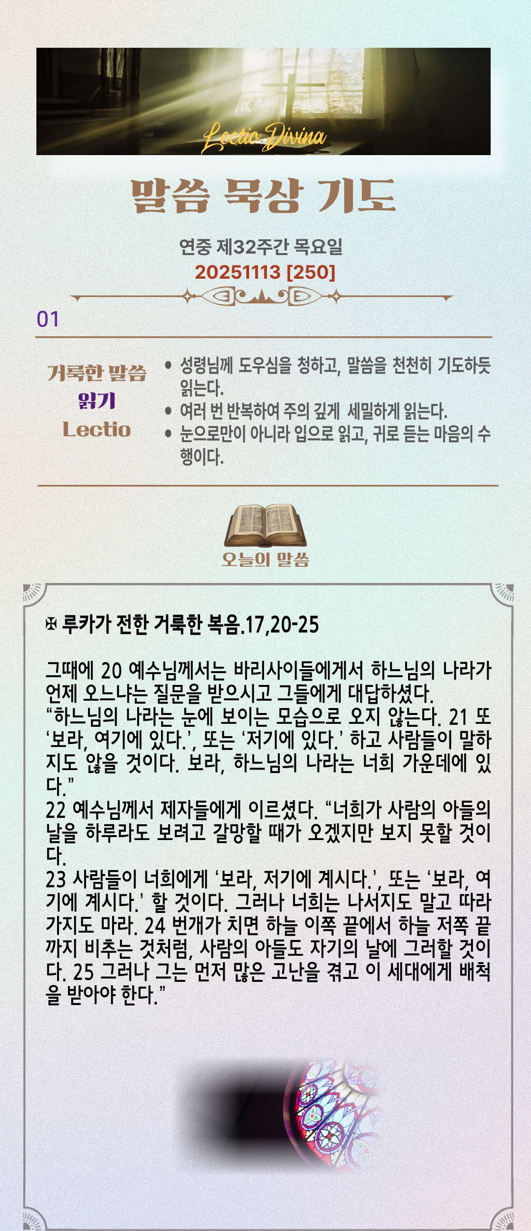 말씀묵상기도 LECTIO DIVINA [250] 20251113 연중 제32주간 목요일
