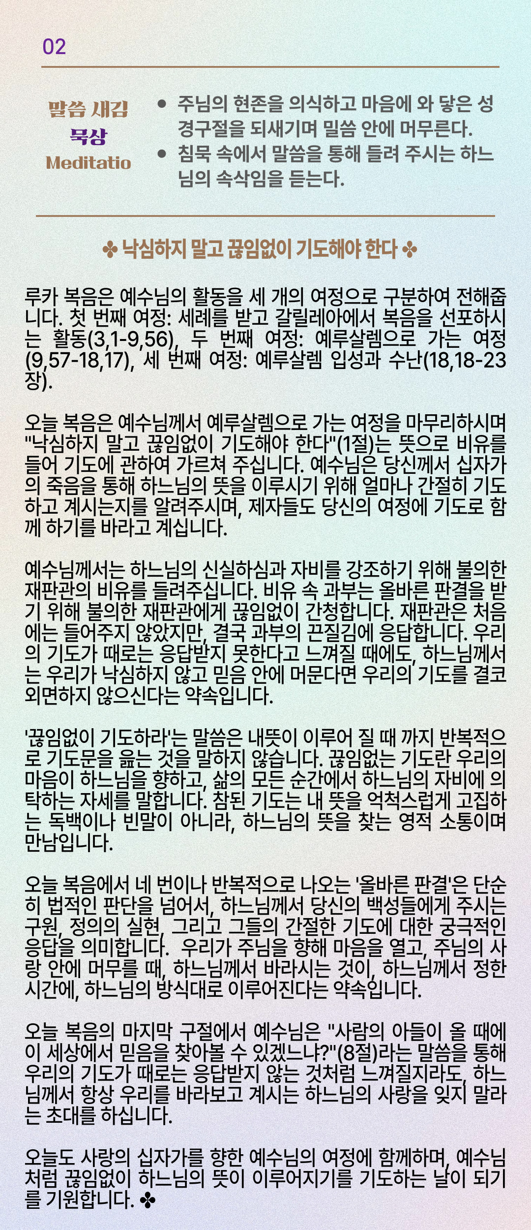 말씀묵상기도 LECTIO DIVINA [252] 20251115 연중 제32주간 토요일