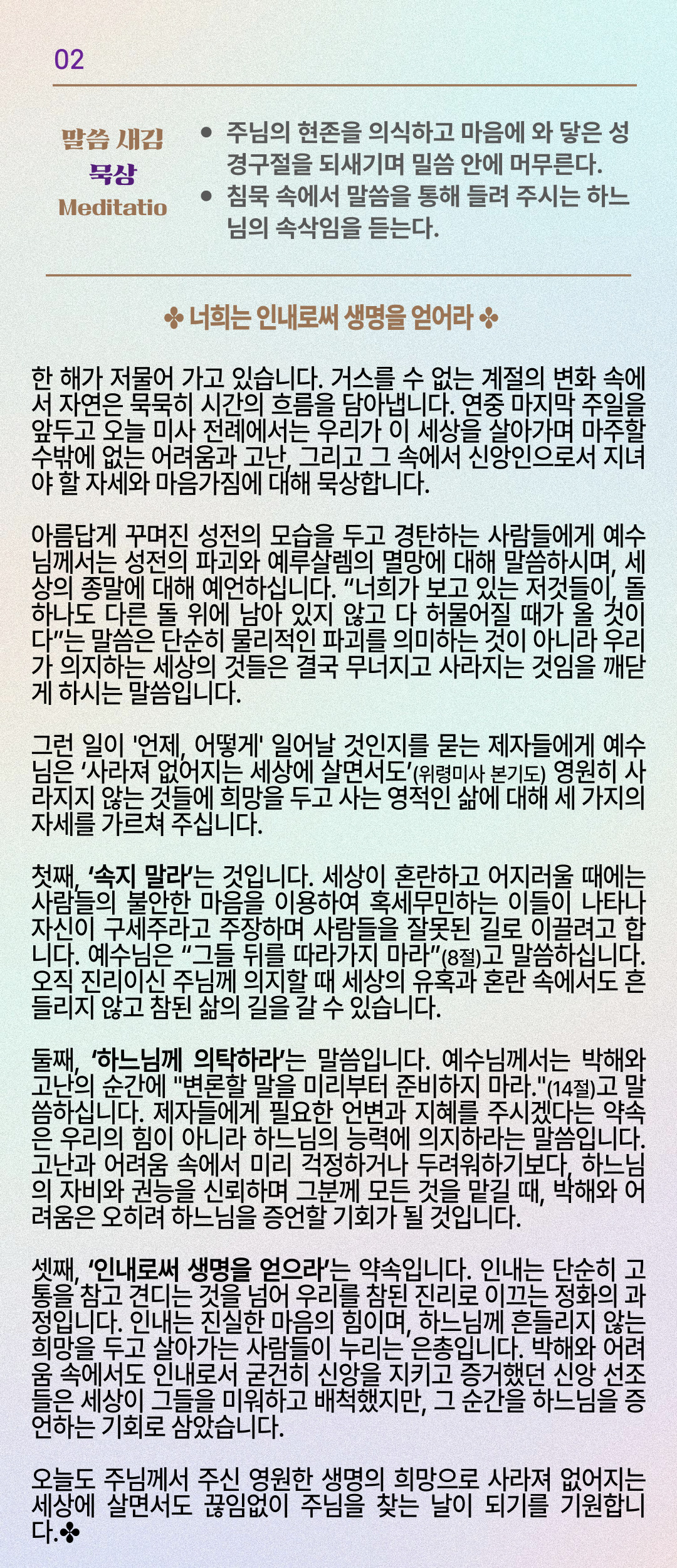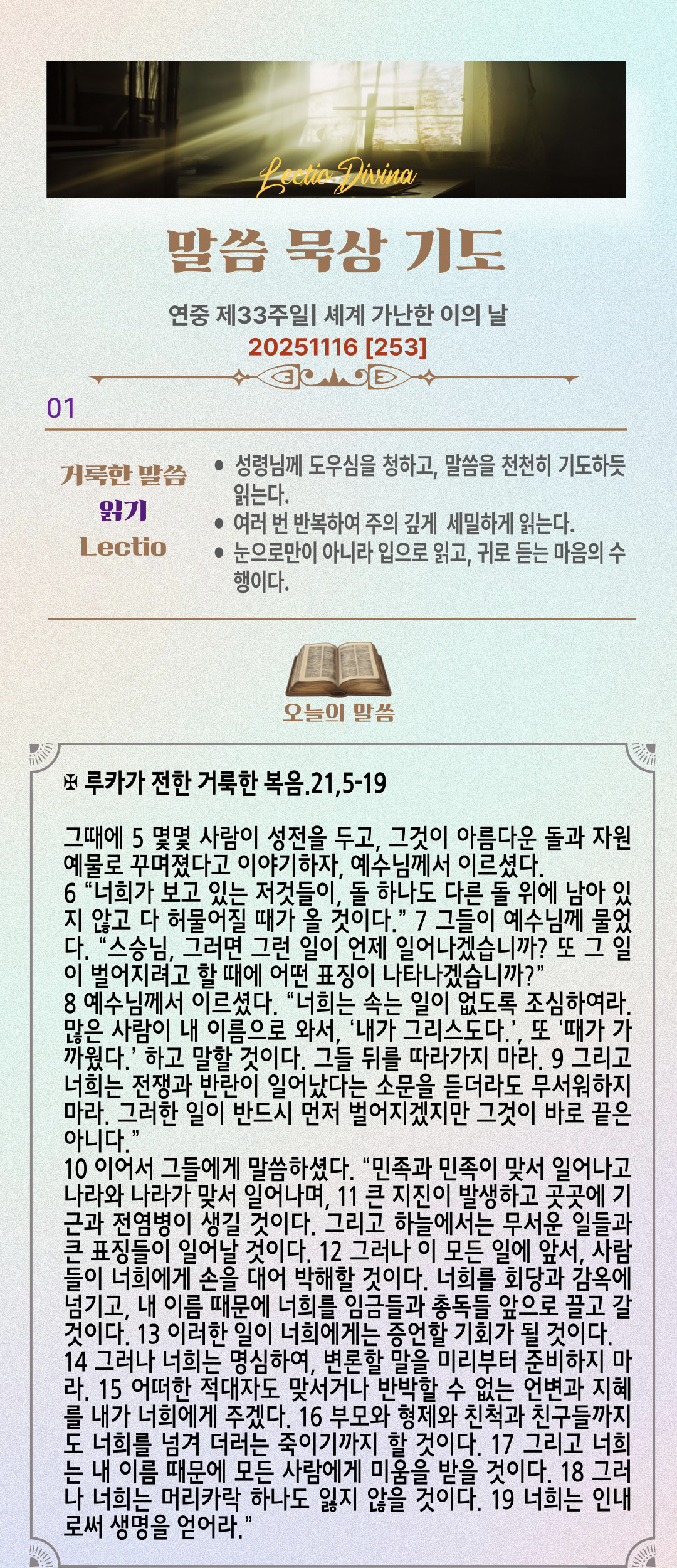 말씀묵상기도 LECTIO DIVINA [253] 20251116 연중 제33주일 | 세계 가난한 이의 날
