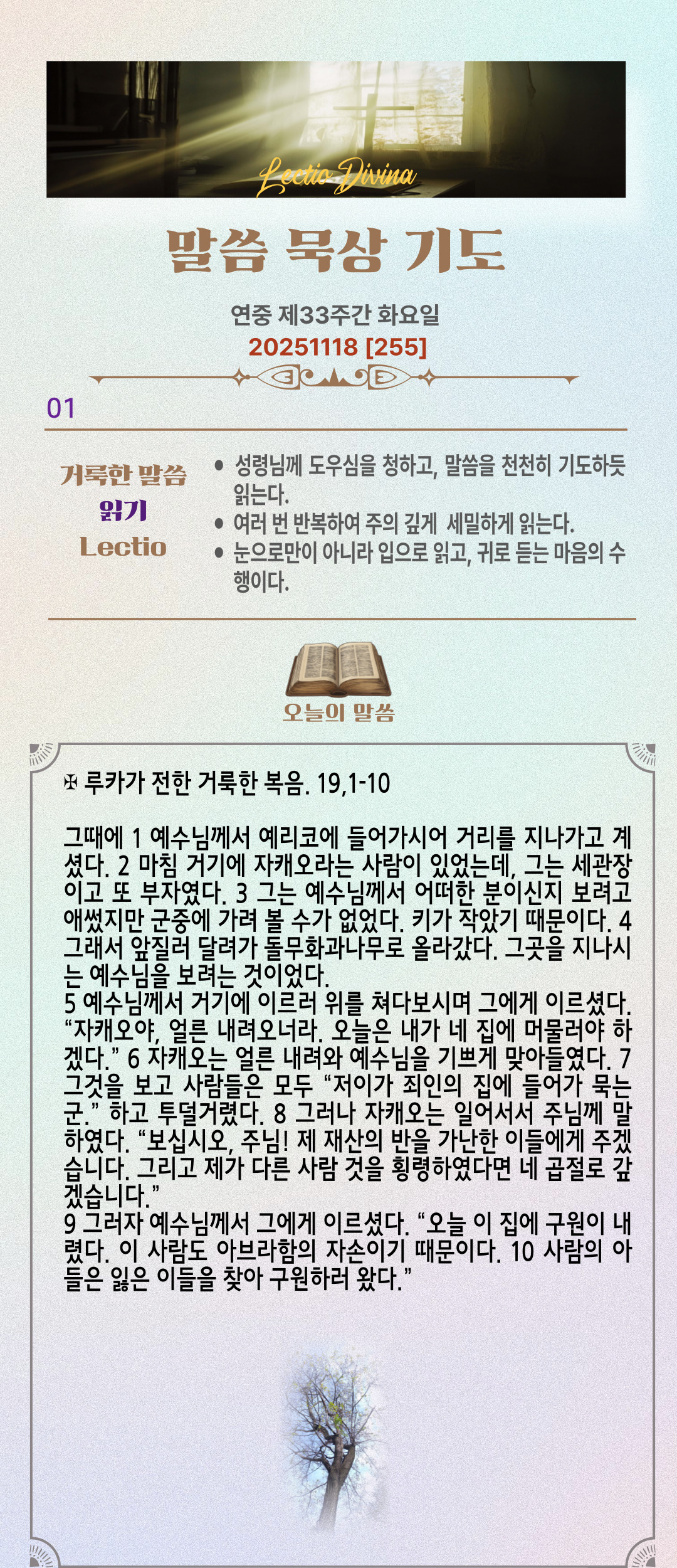 말씀묵상기도 LECTIO DIVINA [255] 20251118 연중 제33주간 화요일