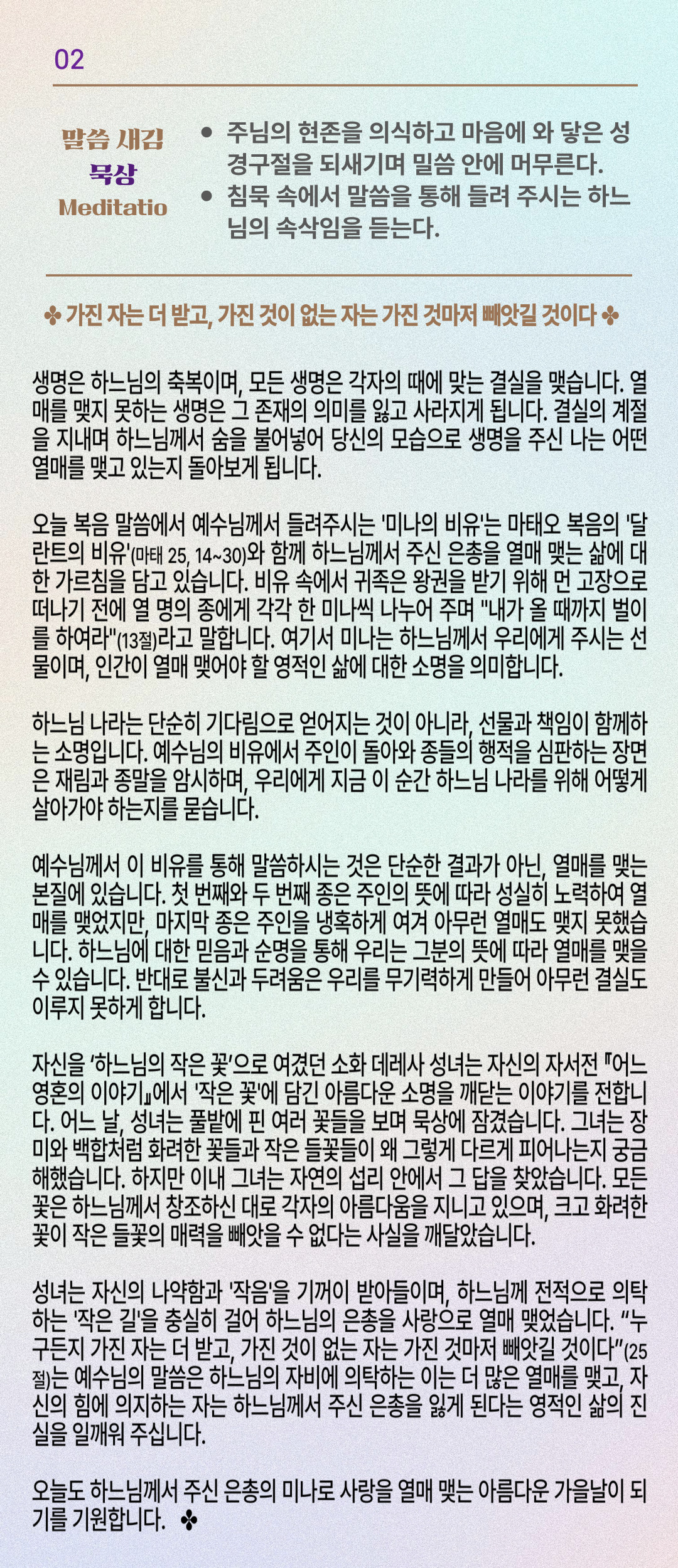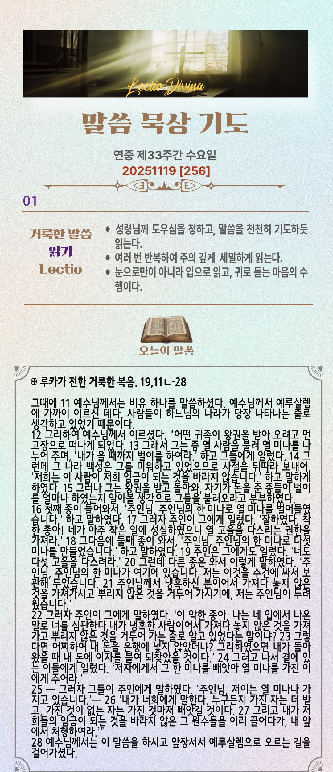 말씀묵상기도 LECTIO DIVINA [256] 20251119 연중 제33주간 수요일