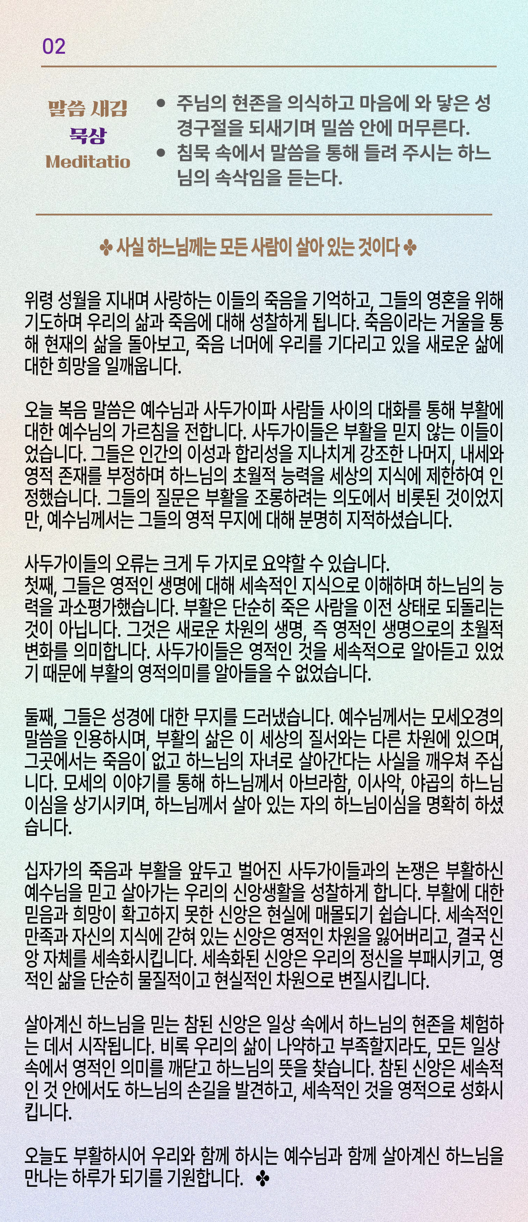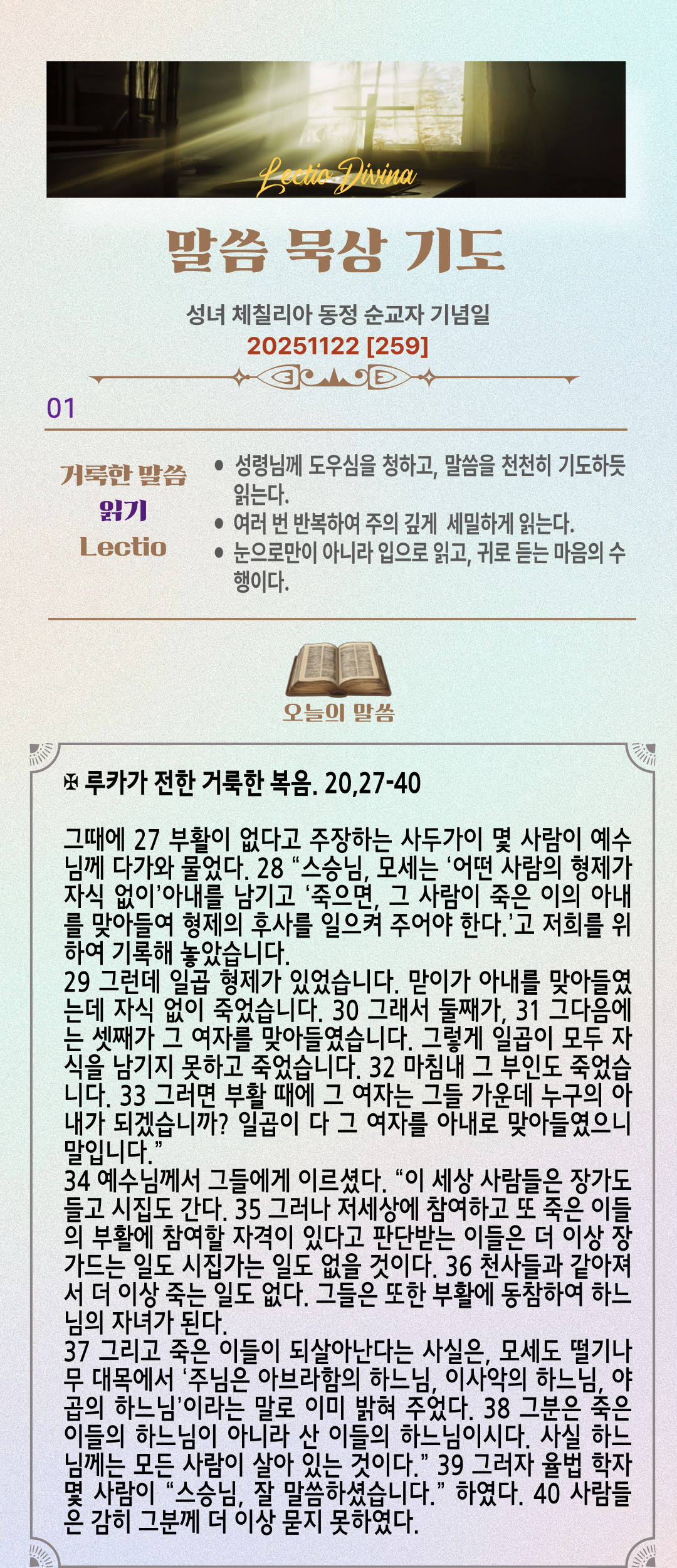 말씀묵상기도 LECTIO DIVINA [259] 20251122 성녀 체칠리아 동정 순교자 기념일