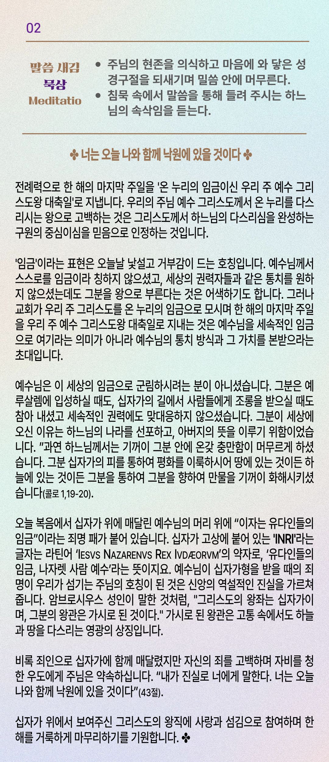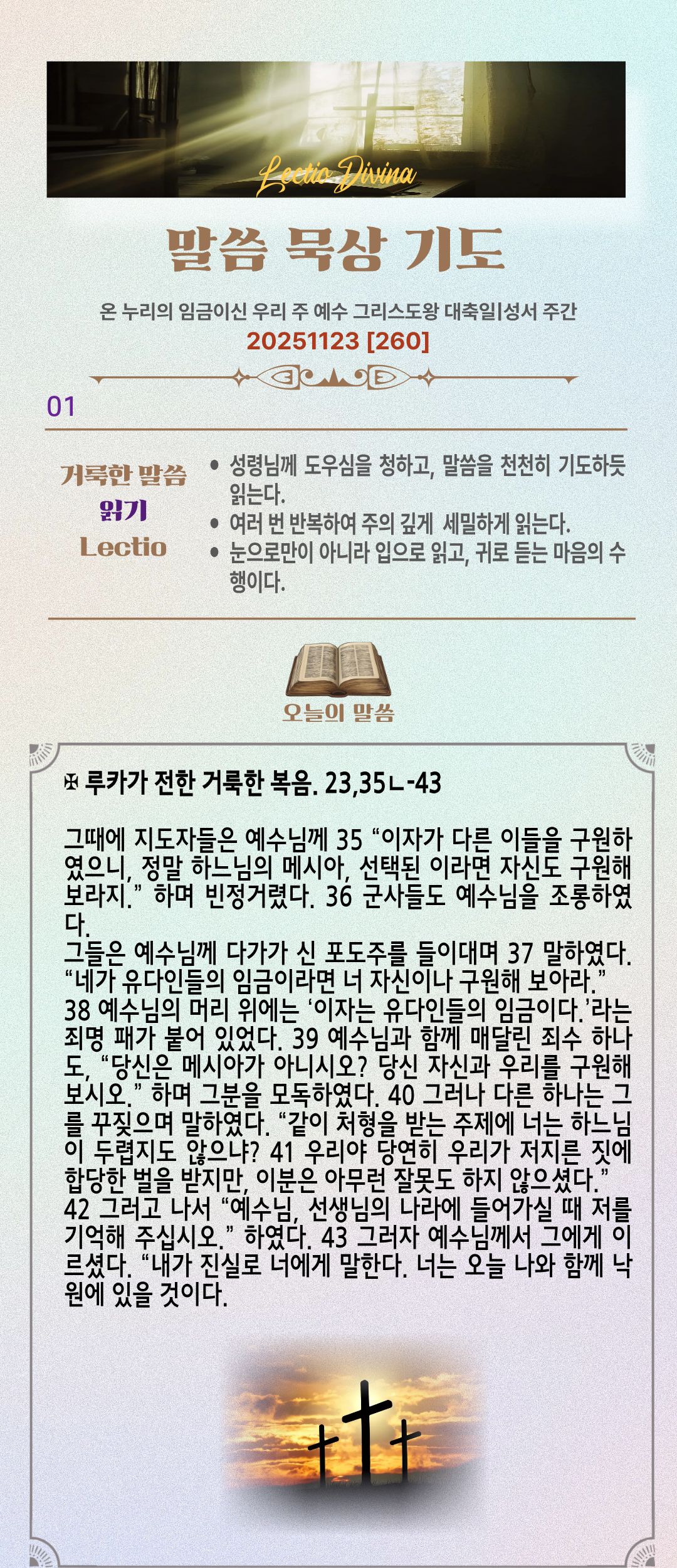 말씀묵상기도 LECTIO DIVINA [260] 20251123 온 누리의 임금이신 우리 주 예수 그리스도왕 대축일|성서 주간
