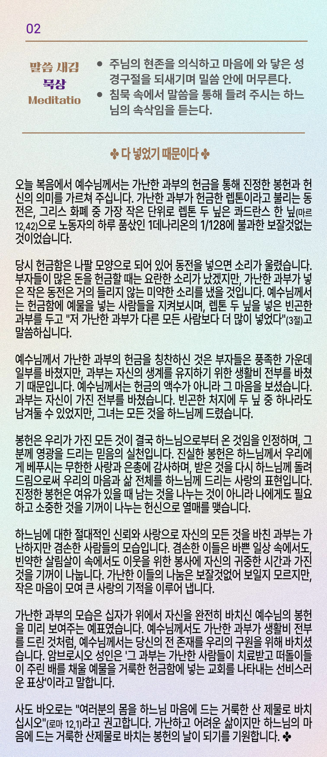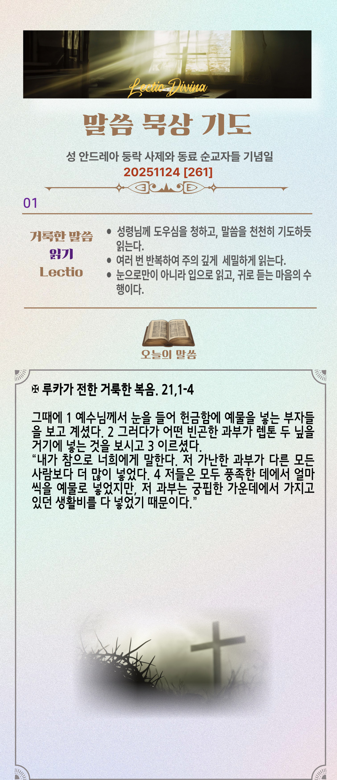 말씀묵상기도 LECTIO DIVINA [261] 20251124 성 안드레아 둥락 사제와 동료 순교자들 기념일