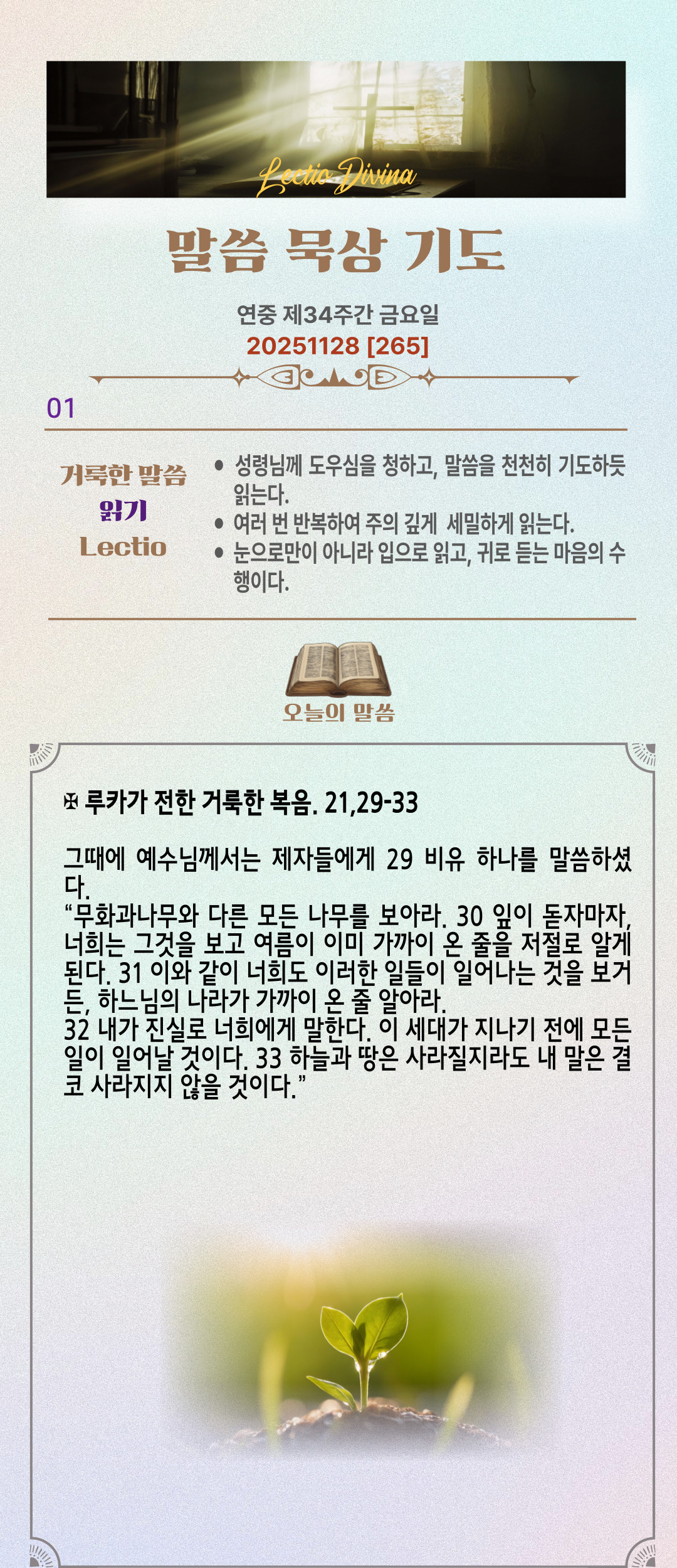 말씀묵상기도 LECTIO DIVINA [265] 20251128 연중 제34주간 금요일