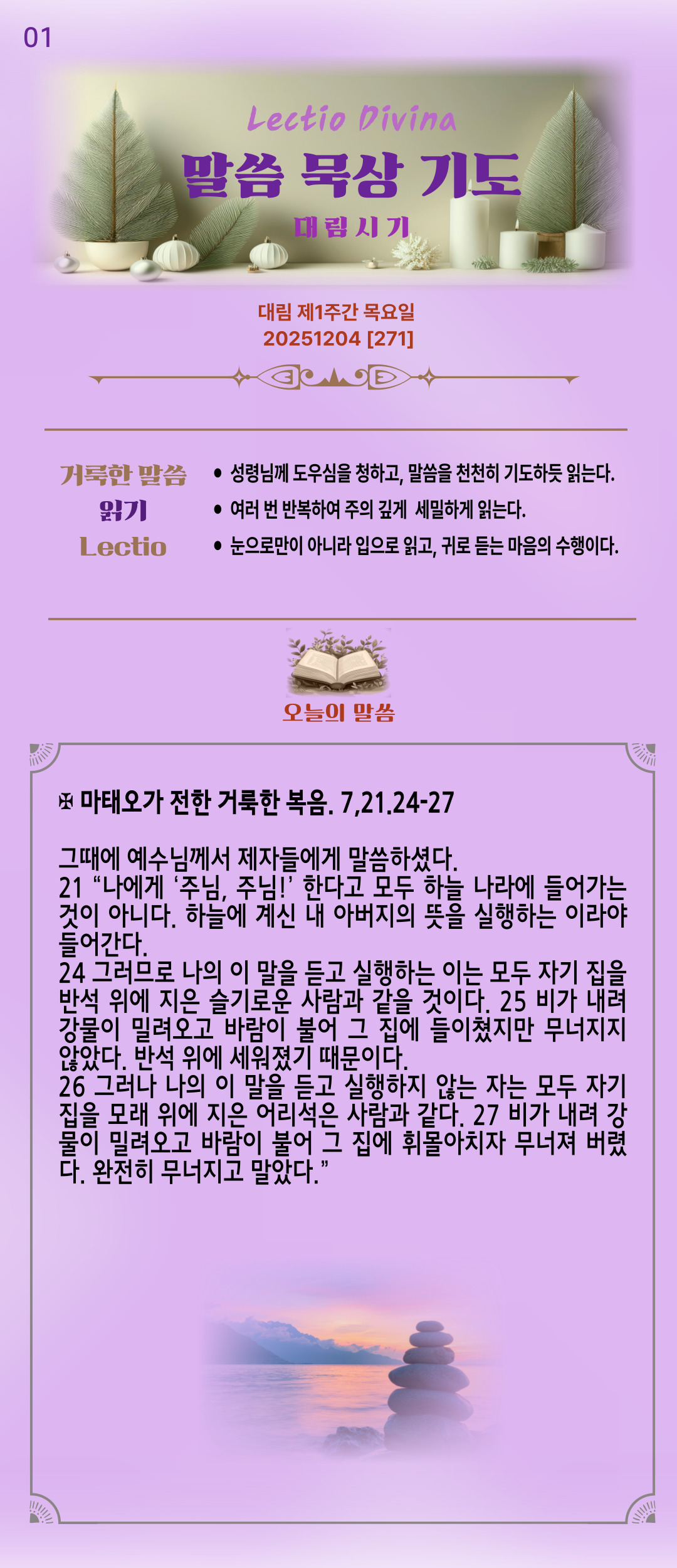 말씀묵상기도 LECTIO DIVINA [271] 20251204 대림 제1주간 목요일