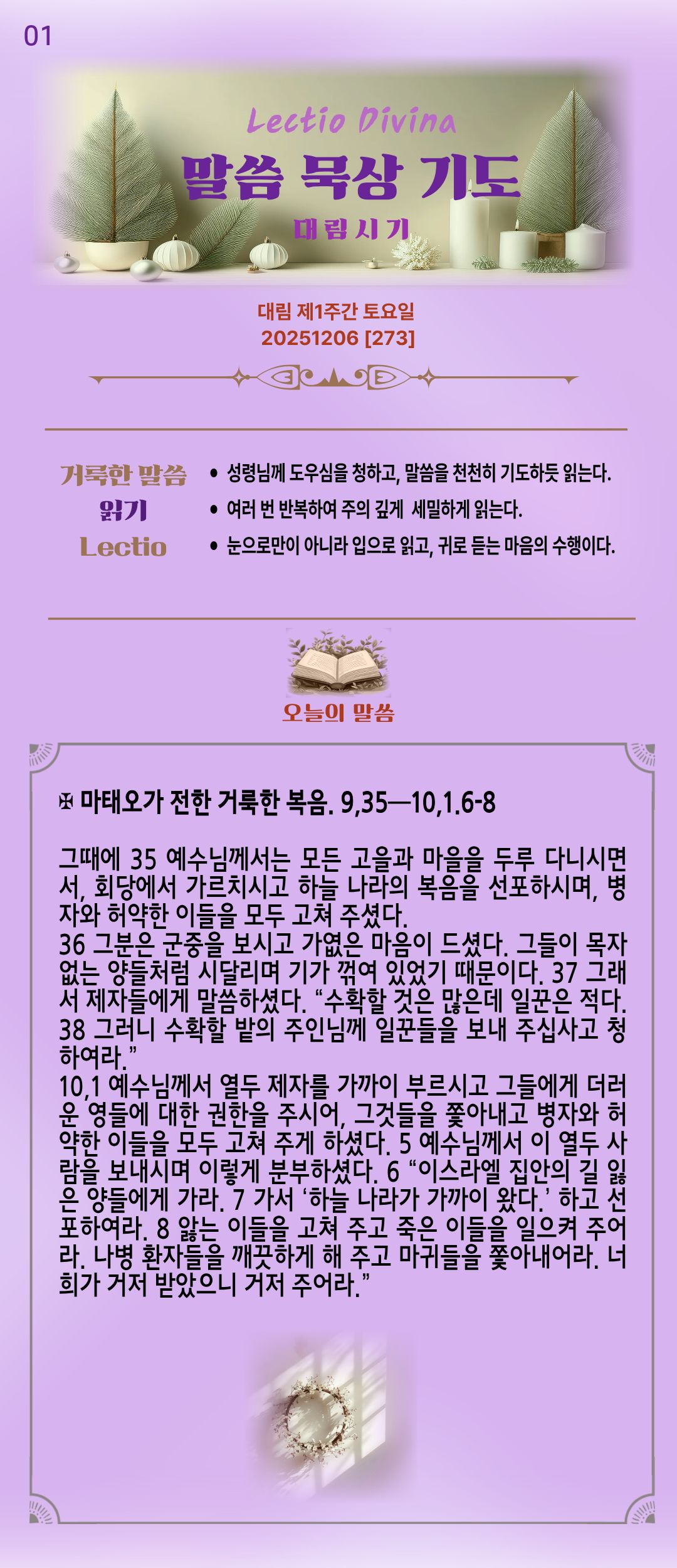 말씀묵상기도 LECTIO DIVINA [273] 20251206 대림 제1주간 토요일