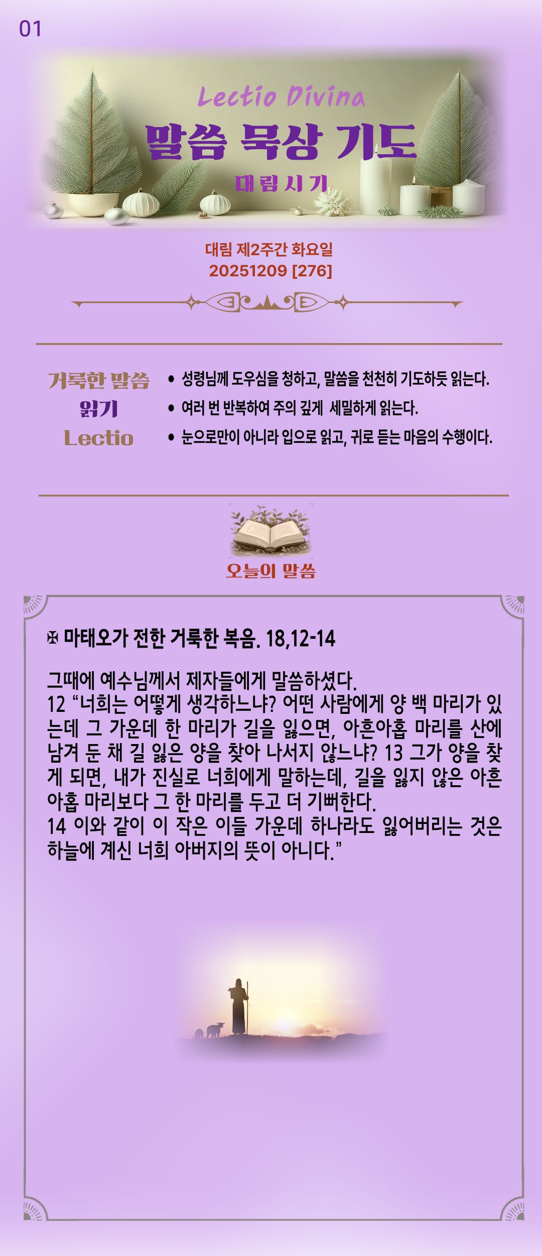 말씀묵상기도 LECTIO DIVINA [276] 20251209 대림 제2주간 화요일
