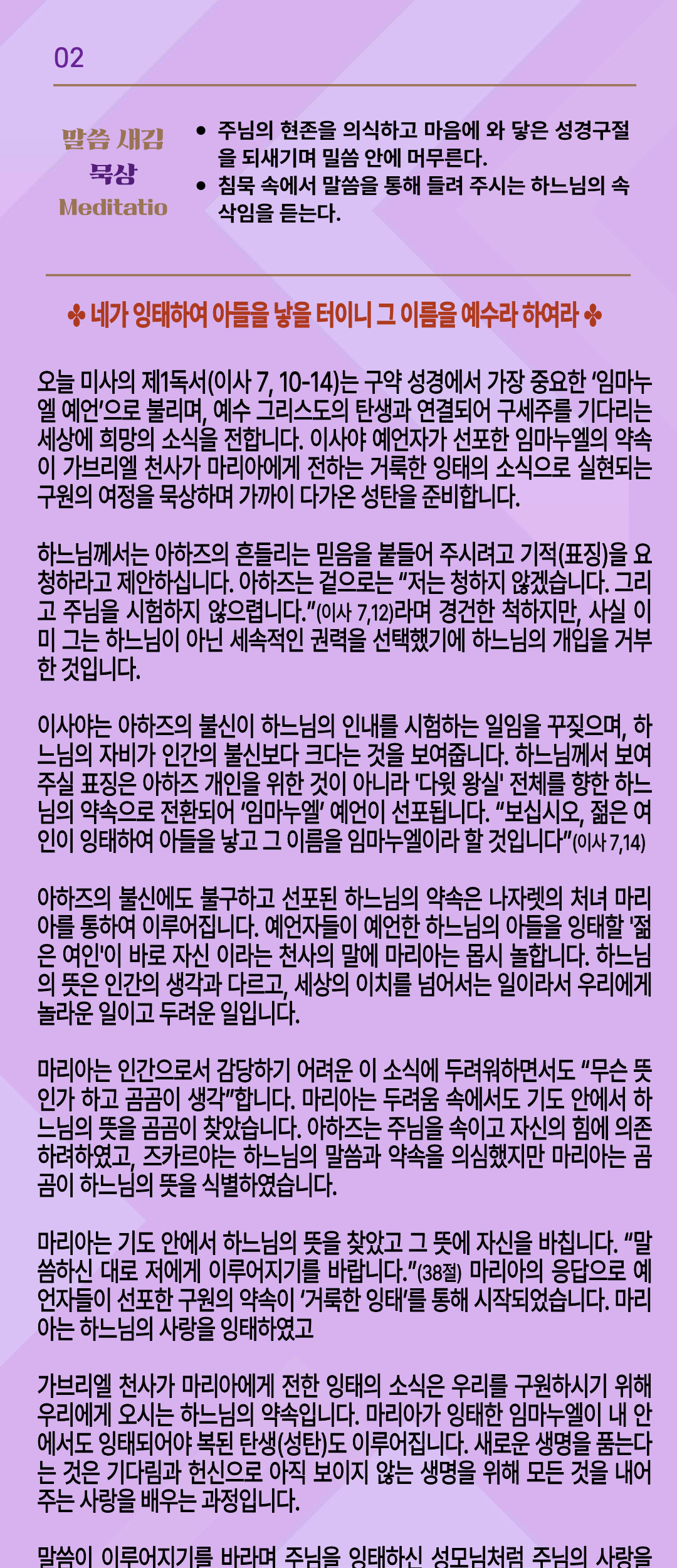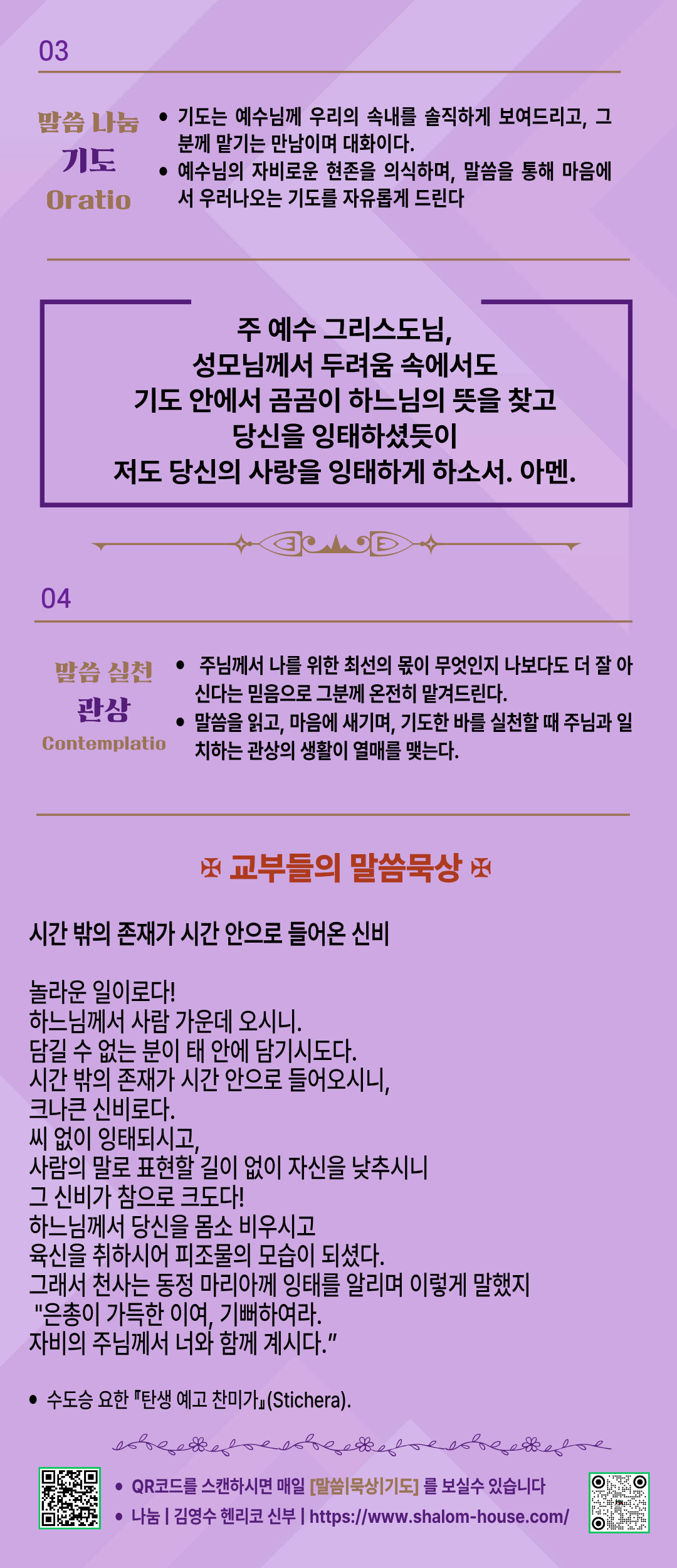 말씀묵상기도 LECTIO DIVINA [287] 20251220 대림 제3주간 토요일