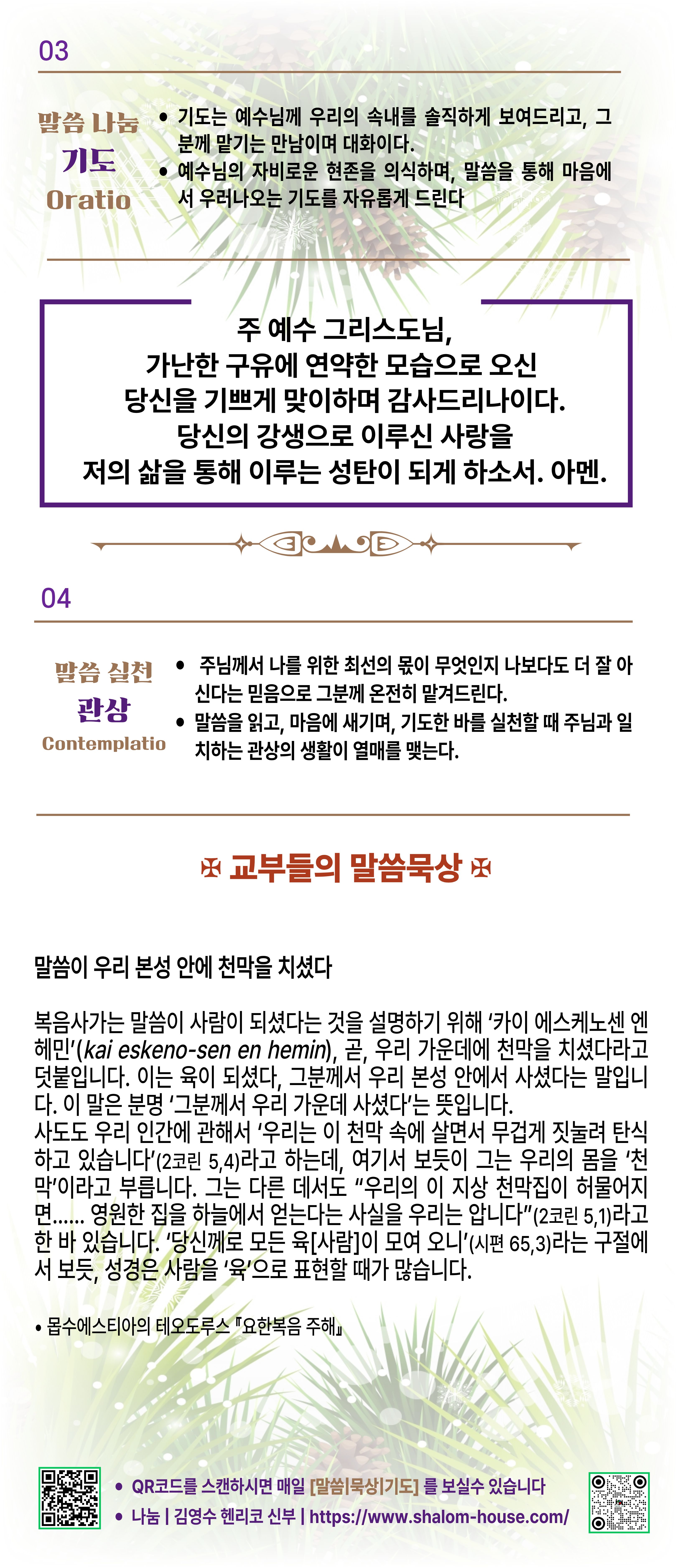 말씀묵상기도 LECTIO DIVINA [291] 20251225 주님 성탄 대축일