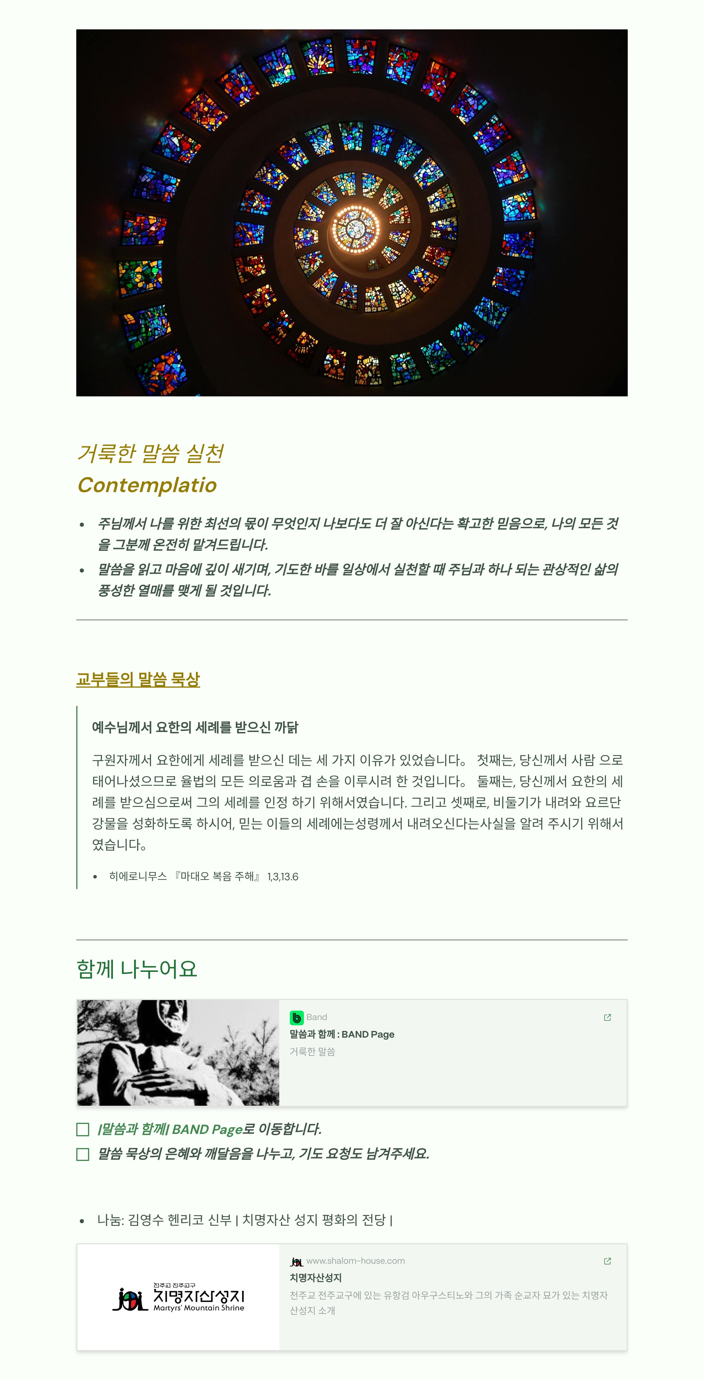 말씀묵상기도 LECTIO DIVINA 2025060111주님 세례 축일