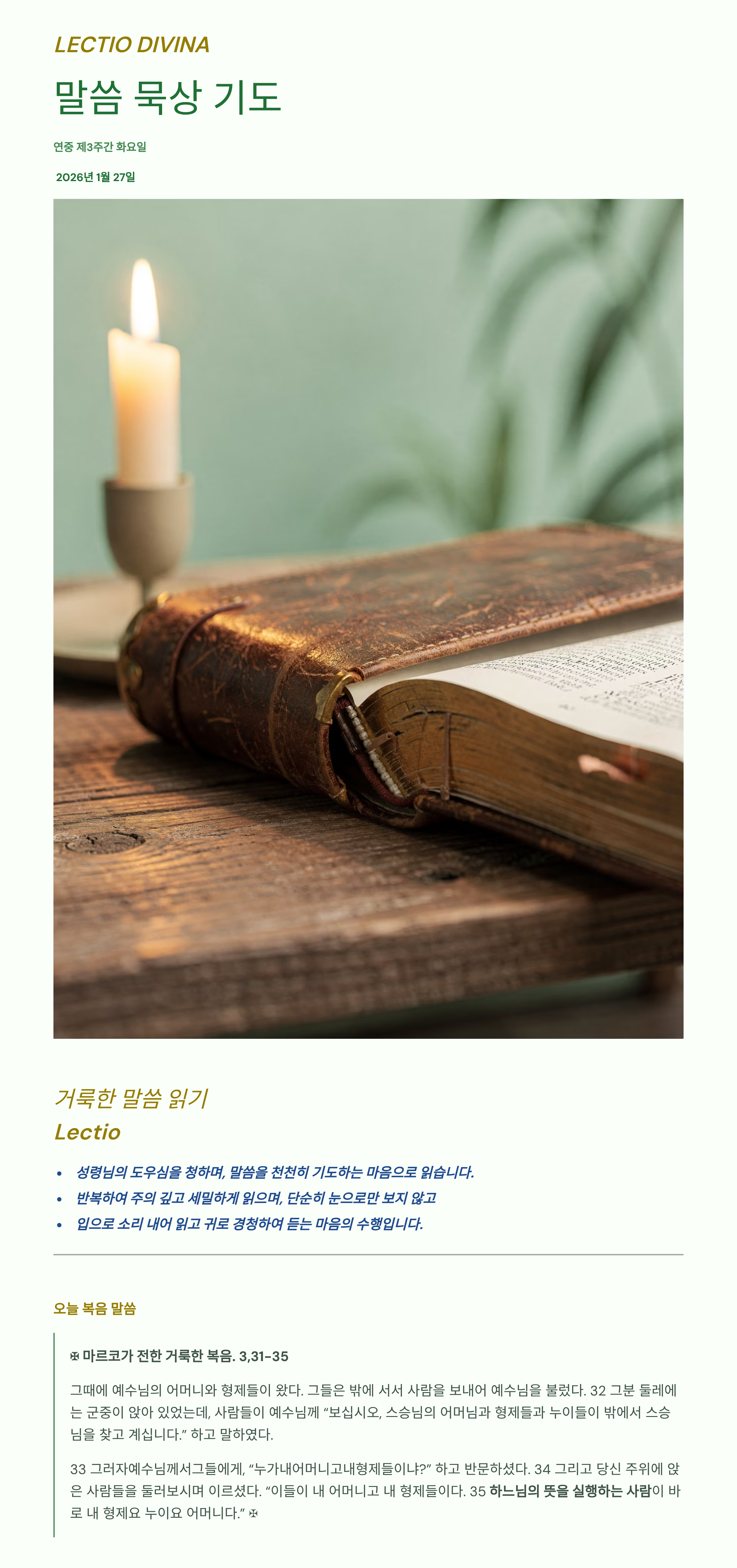 말씀묵상기도 LECTIO DIVINA 2026 01 27 연중 제3주간 화요일