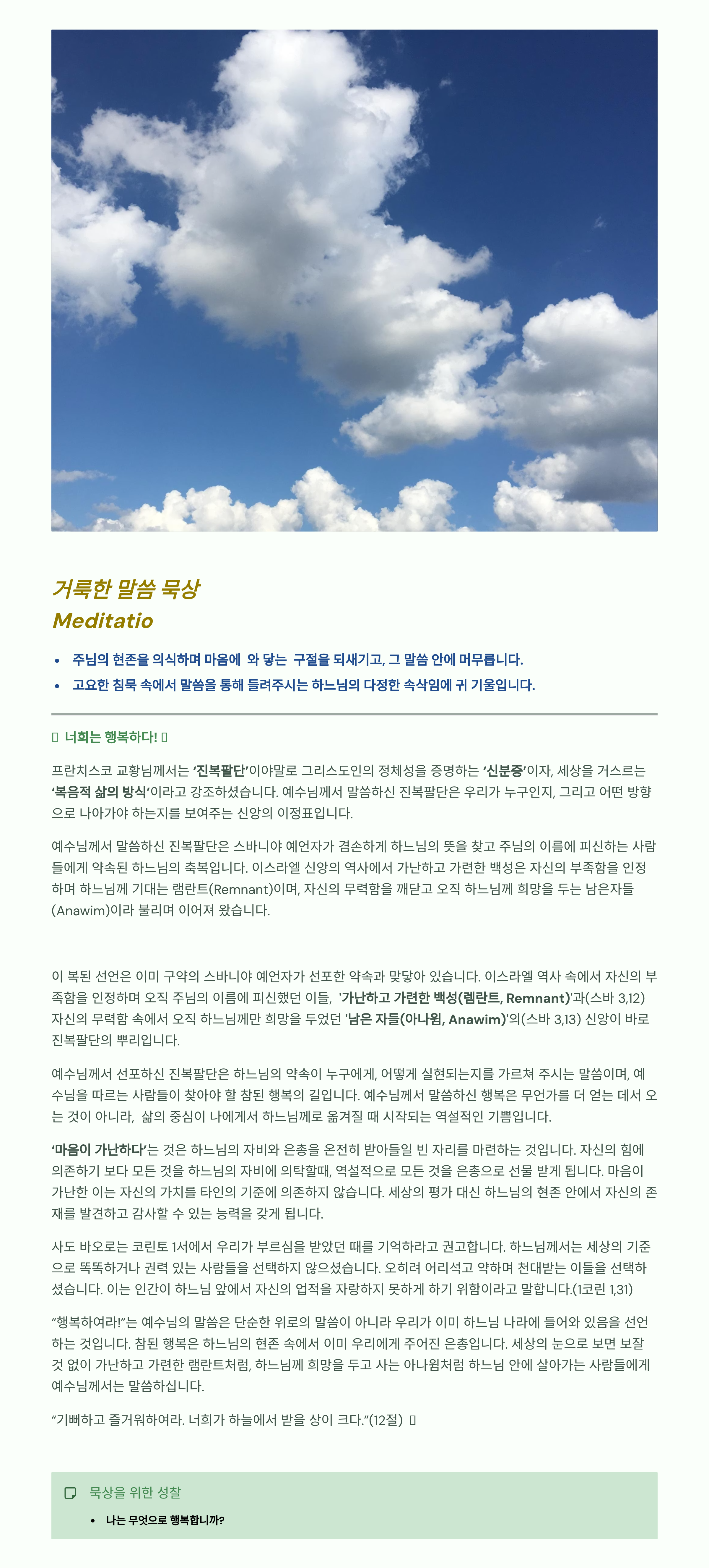 말씀묵상기도 LECTIO DIVINA 20256 02 01 연중 제4주일