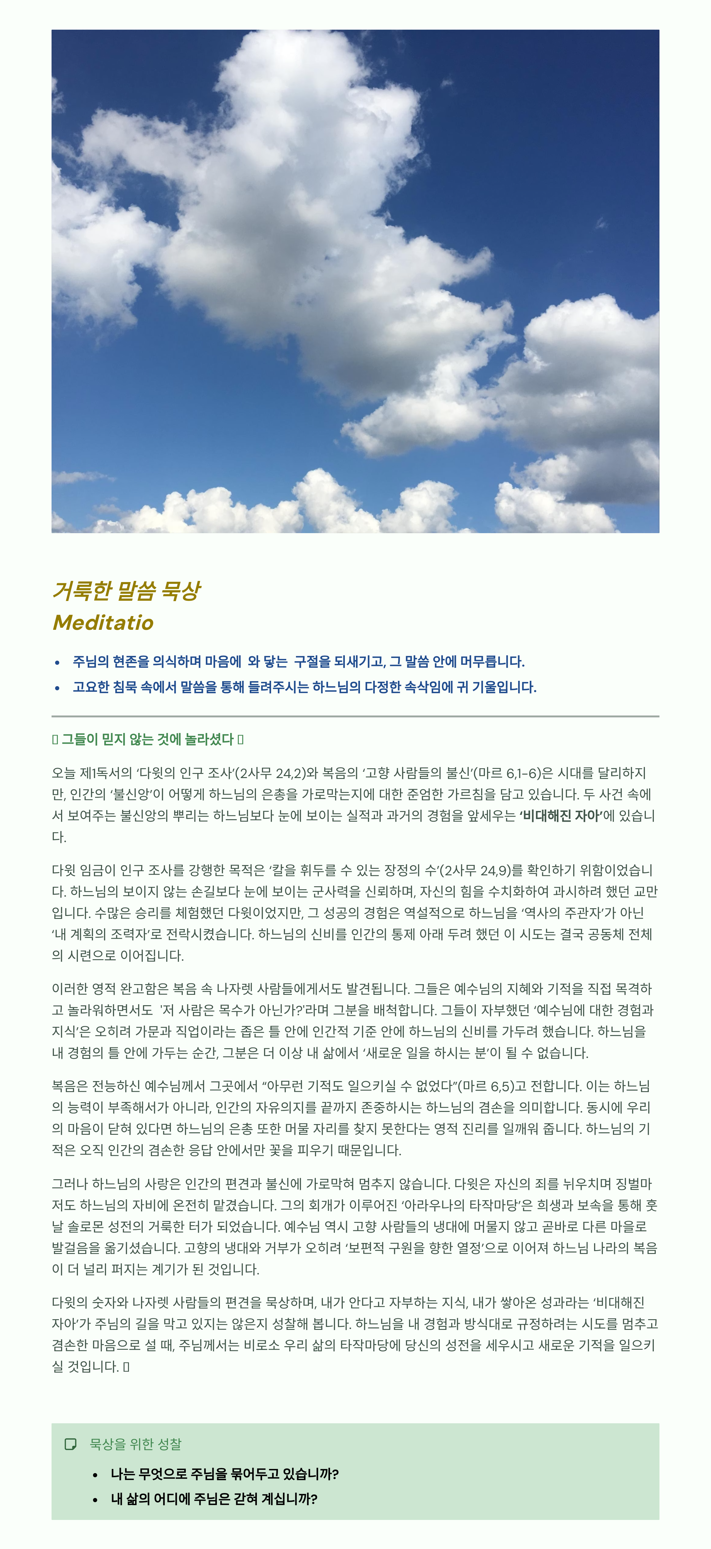 말씀묵상기도 LECTIO DIVINA 2026 02 04 연중 제4주간 수요일