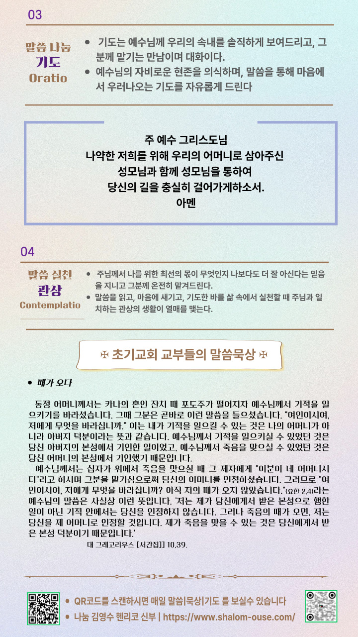 말씀묵상기도 LECTIO DIVINA [98] 20250610 연중 제10주간 화요일