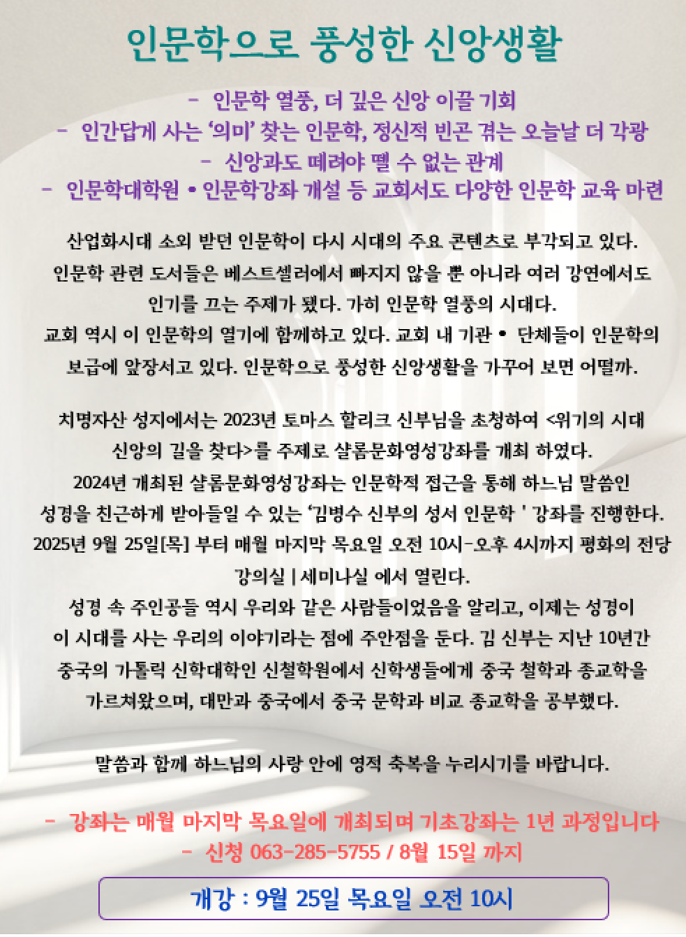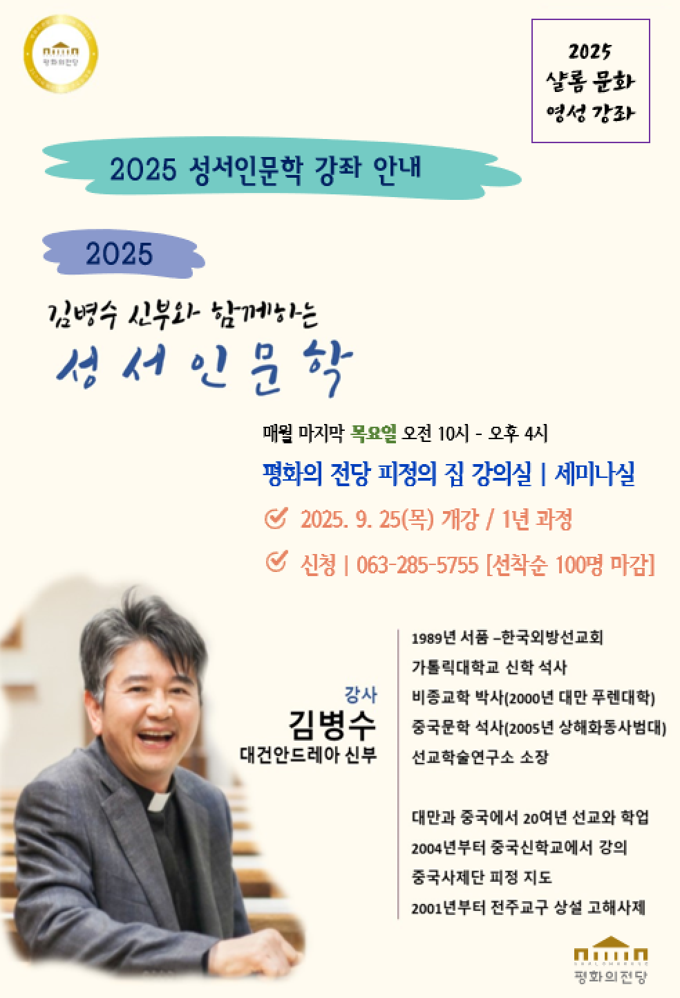 2025년 샬롬 영성강좌 '김병수신부와 함께하는 성서인문학' 제2기 수강자 모집