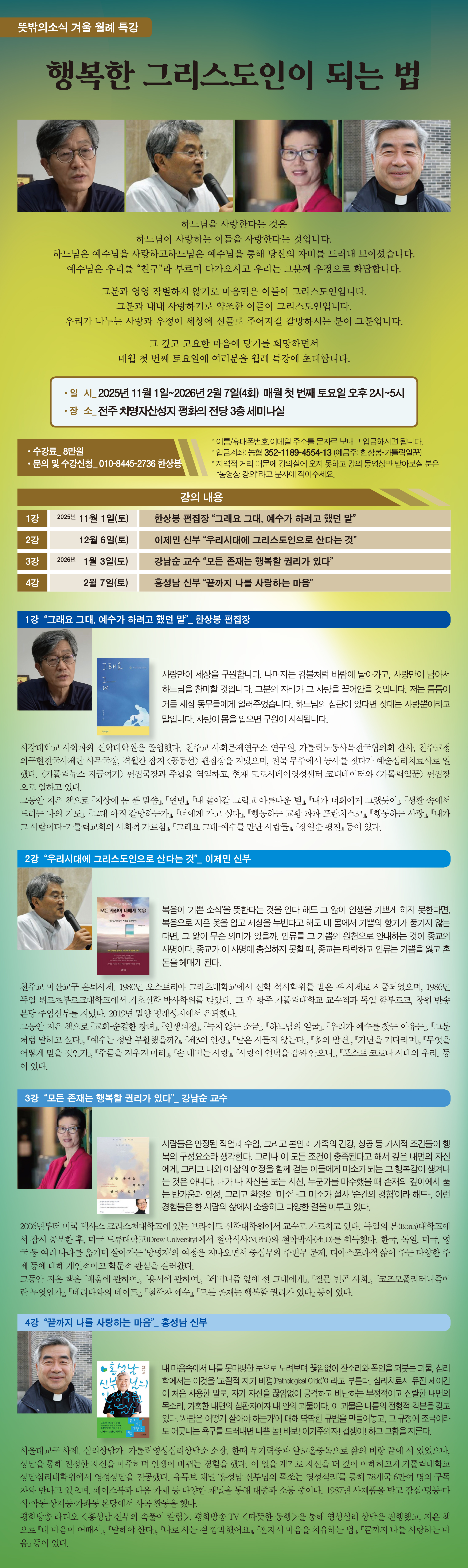 뜻밖의소식 겨울 월례 특강 '행복한 그리스도인이 되는 법' 수강생 모집