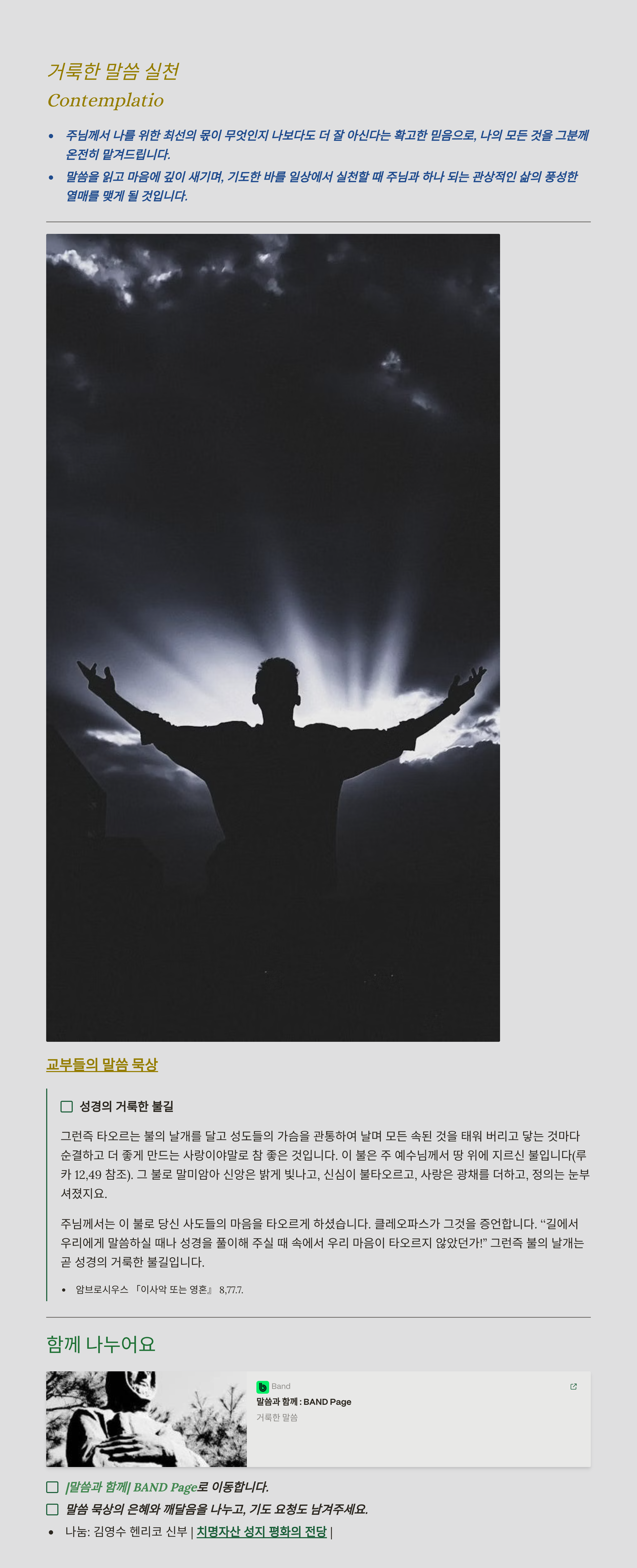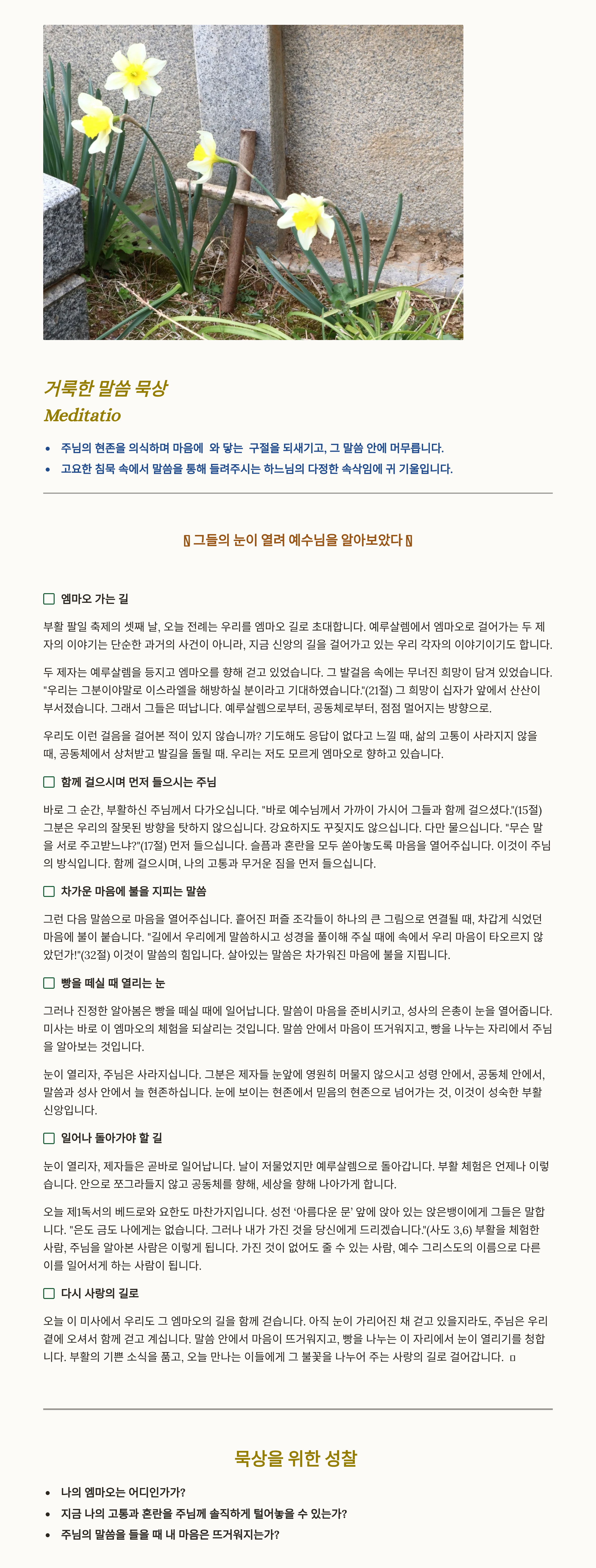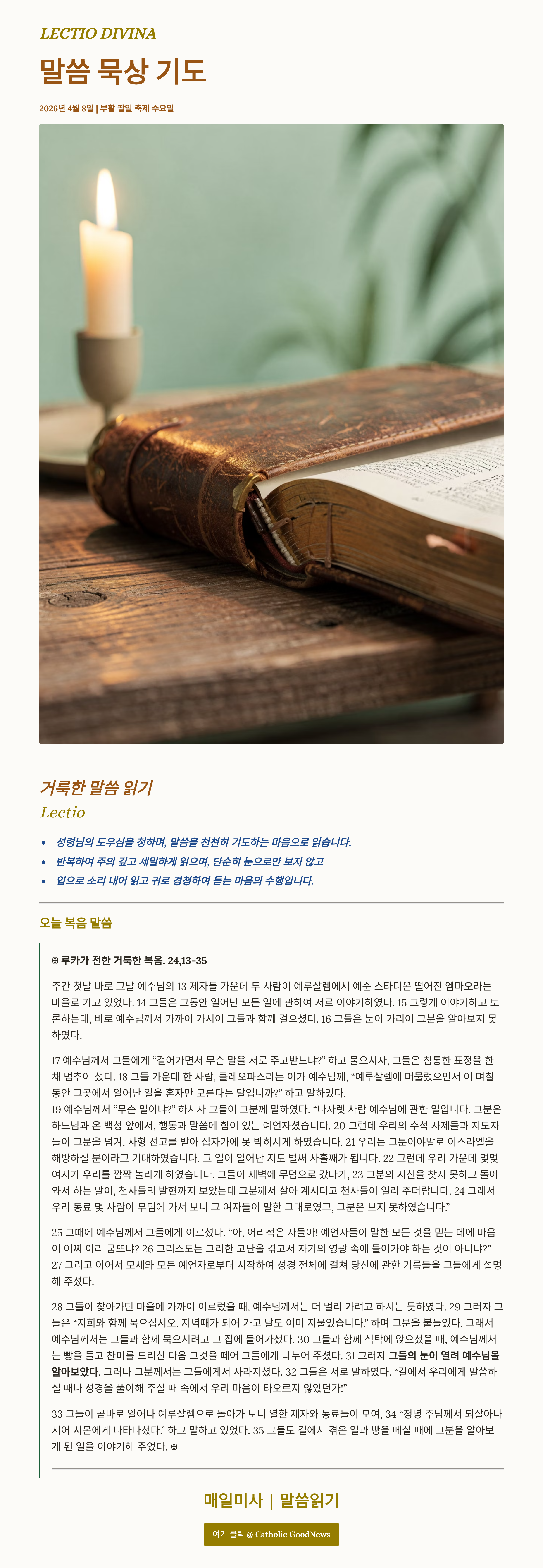 말씀묵상기도 LECTIO DIVINA 2026 04 08 부활 팔일 축제 수요일