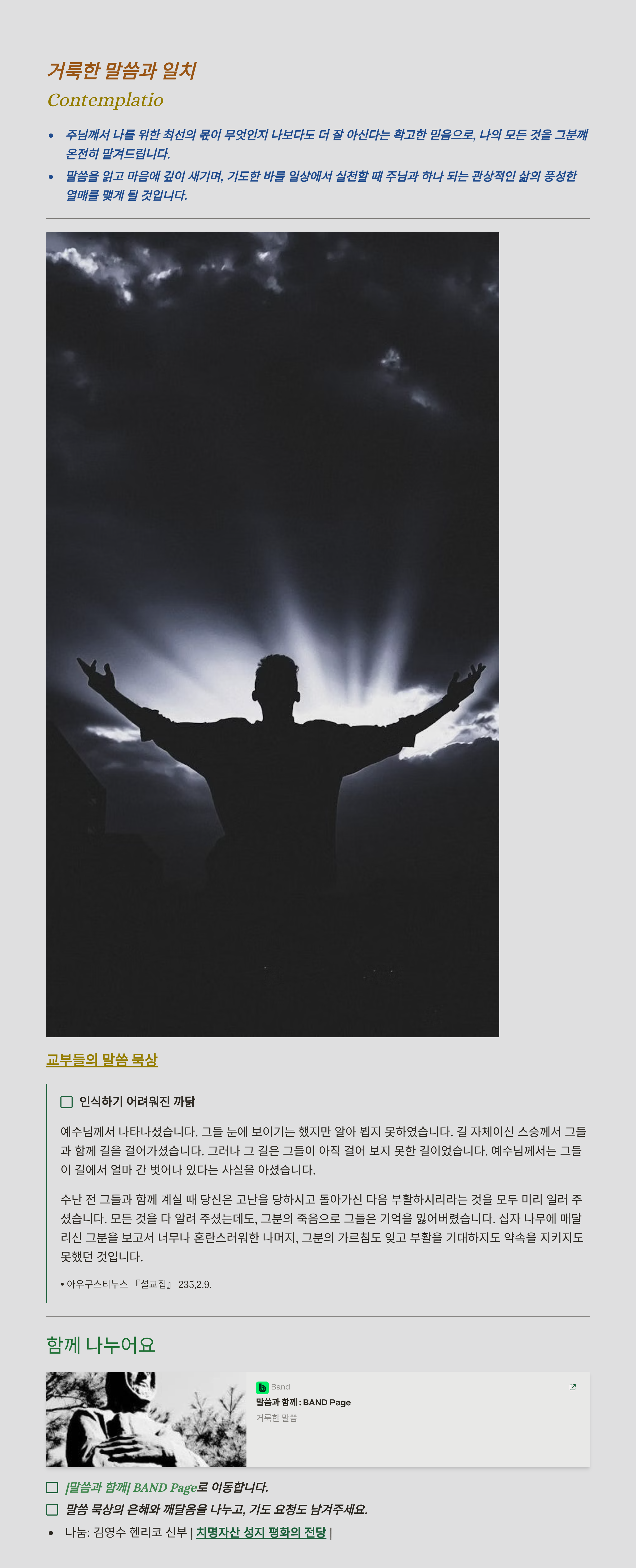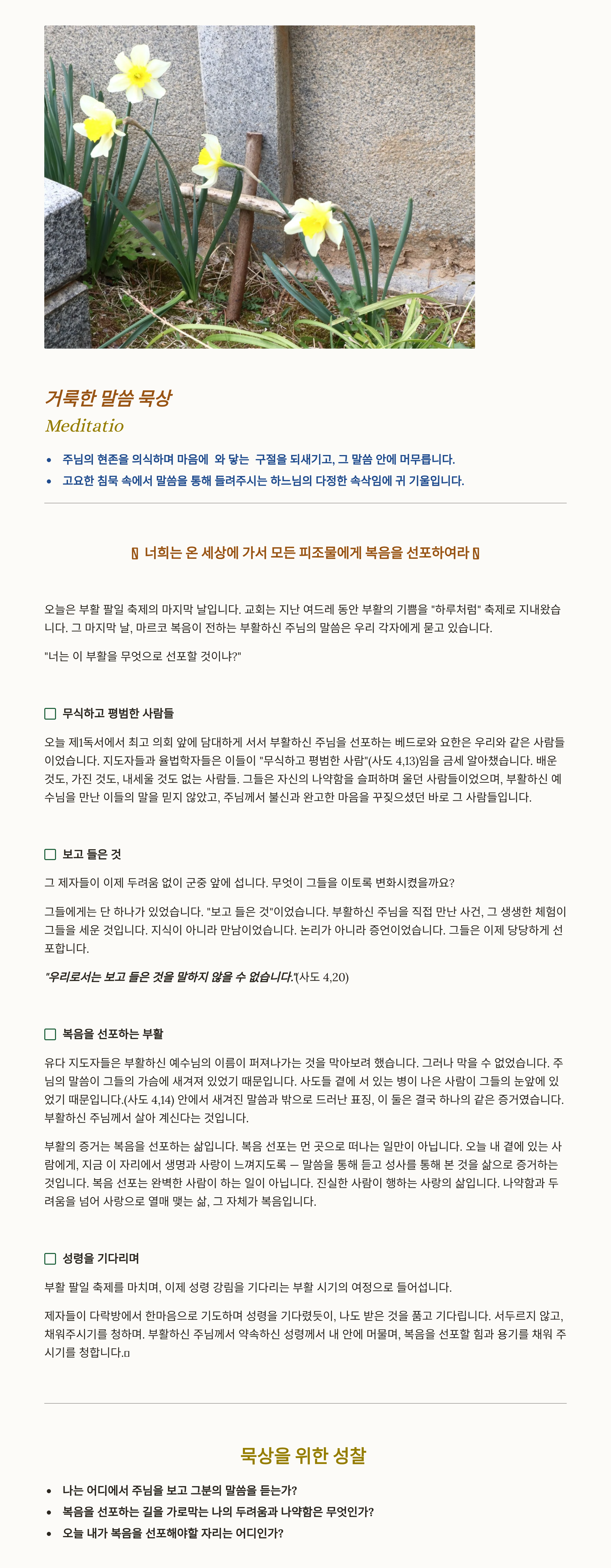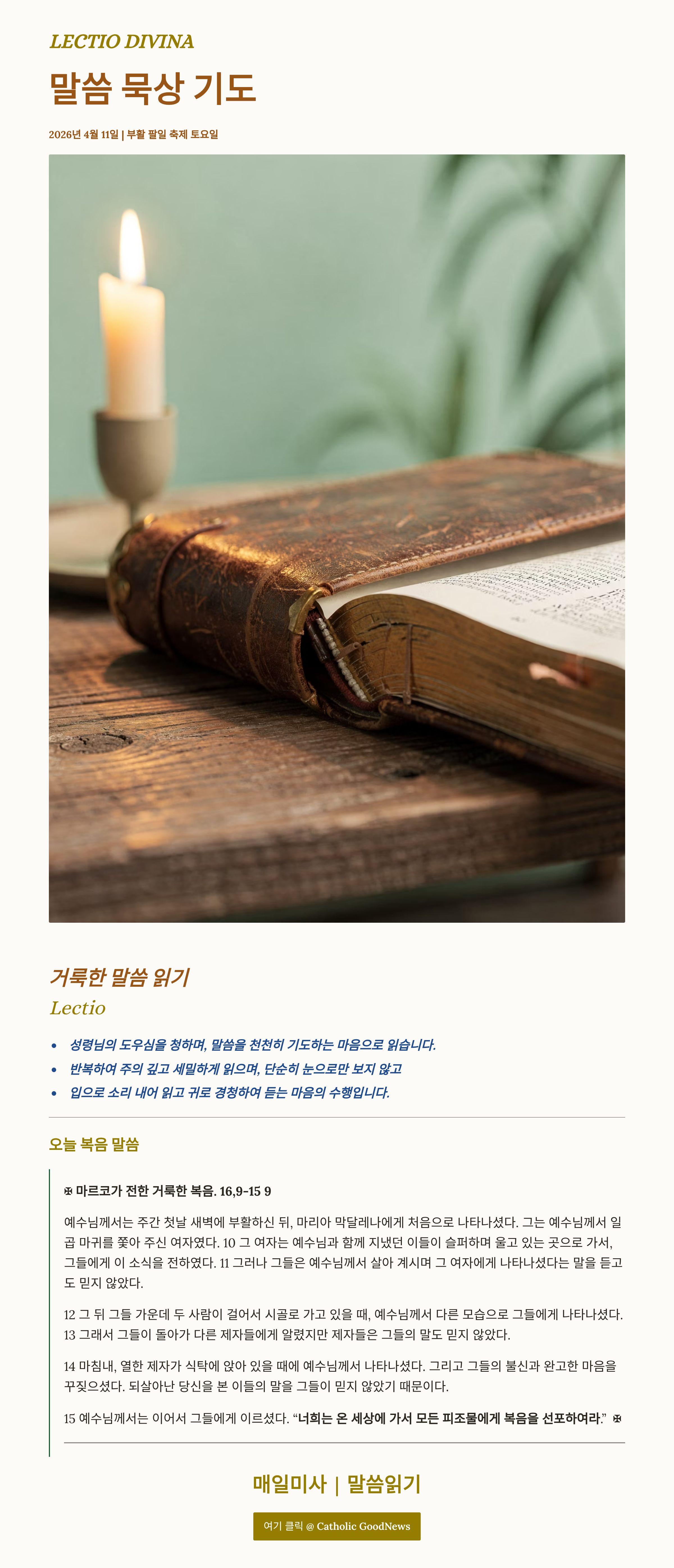 말씀묵상기도 LECTIO DIVINA 2026 04 11 부활 팔일 축제 토요일