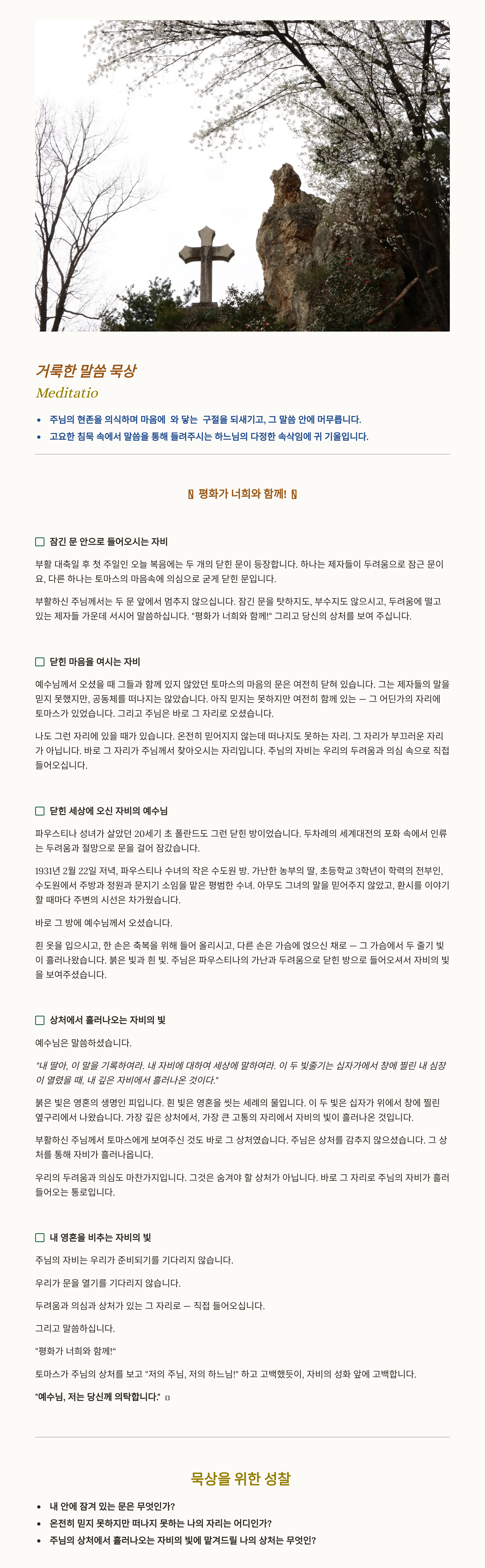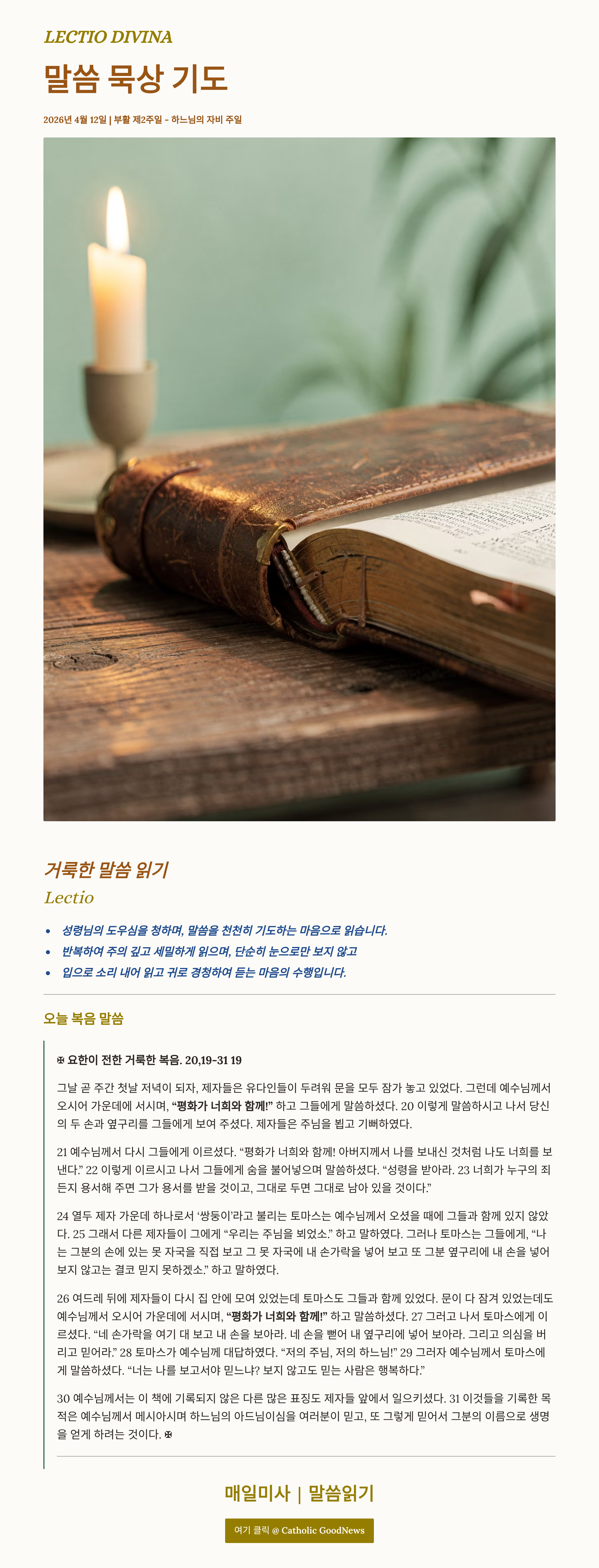 말씀묵상기도 LECTIO DIVINA 20026 04 12 부활 제2주일 하느님 자비의 주일