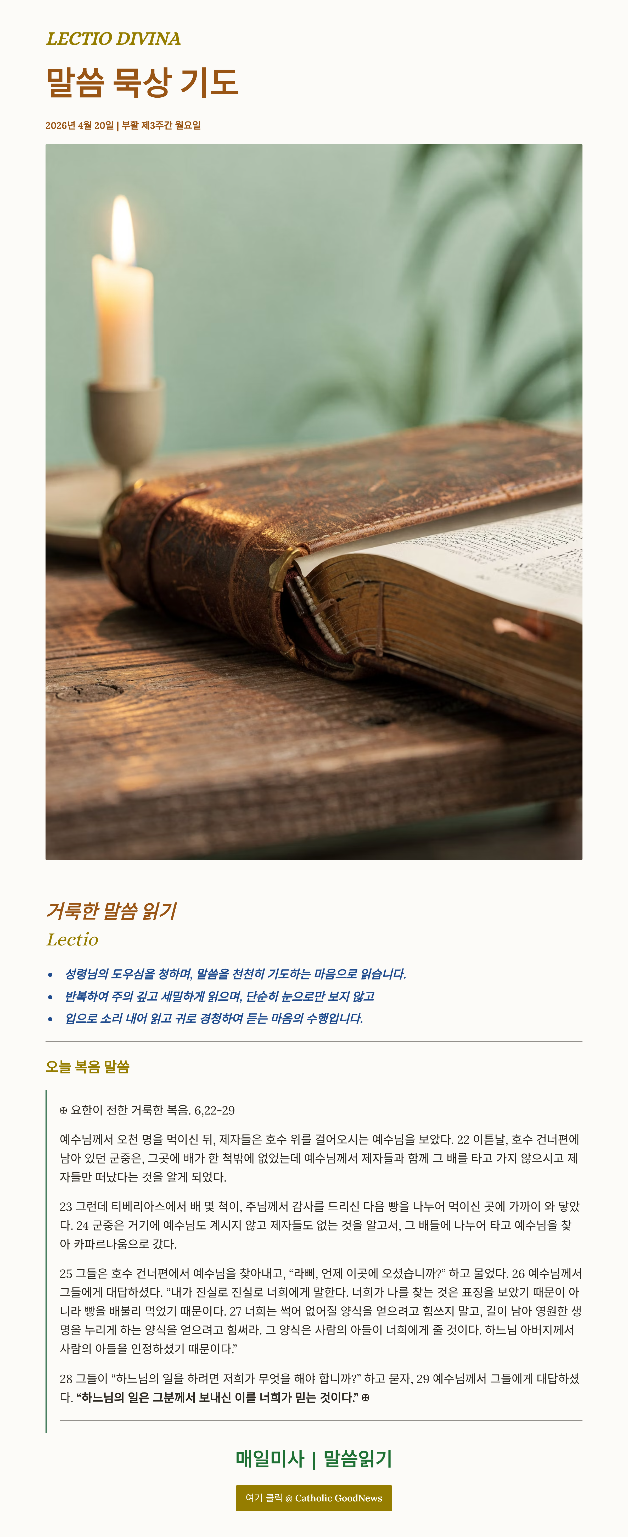 말씀묵상기도 LECTIO DIVINA 20026 04 15 부활 제3주간 월요일