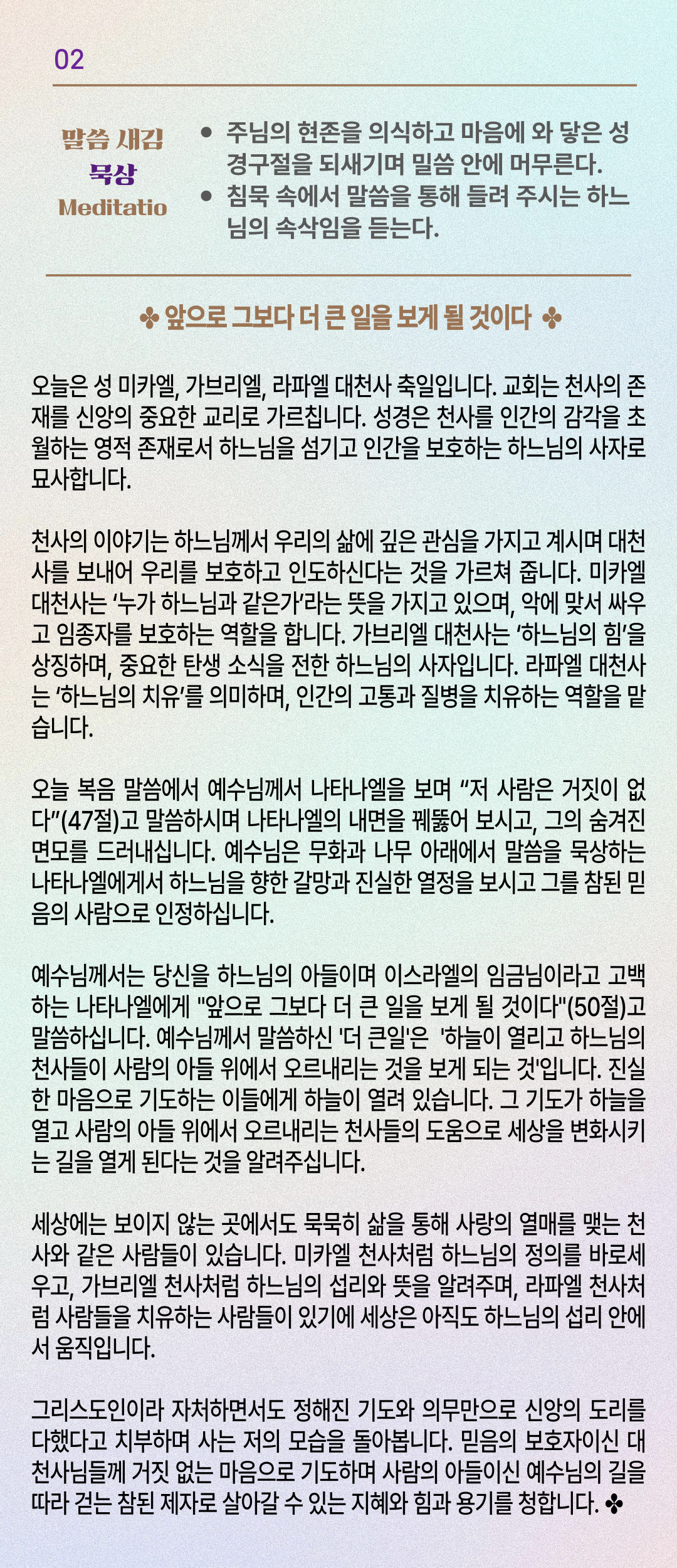 말씀묵상기도 LECTIO DIVINA [209] 20250929 성 미카엘, 성 가브리엘, 성 라파엘 대천사 축일