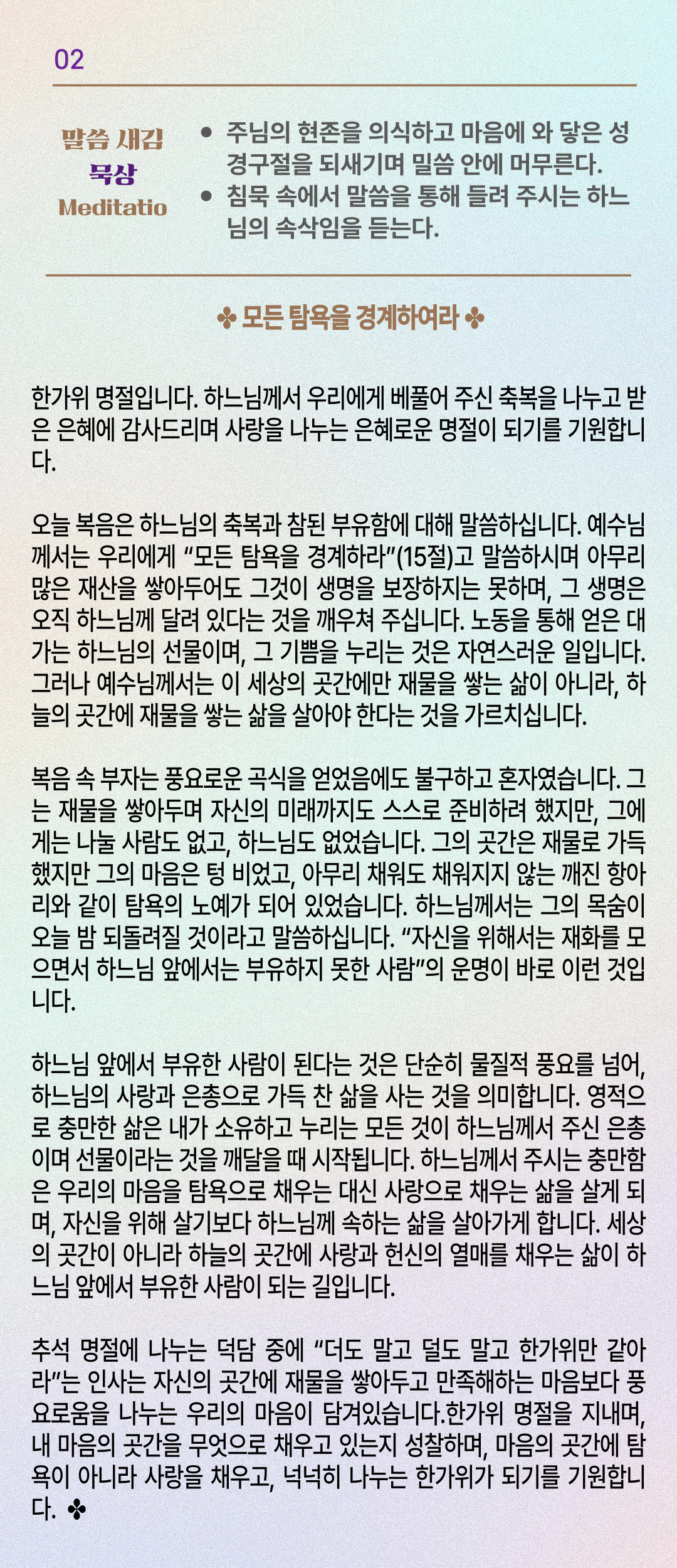 말씀묵상기도 LECTIO DIVINA [216] 20251006 한가위