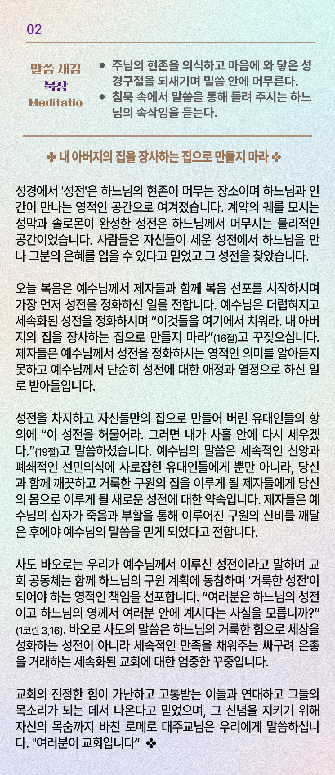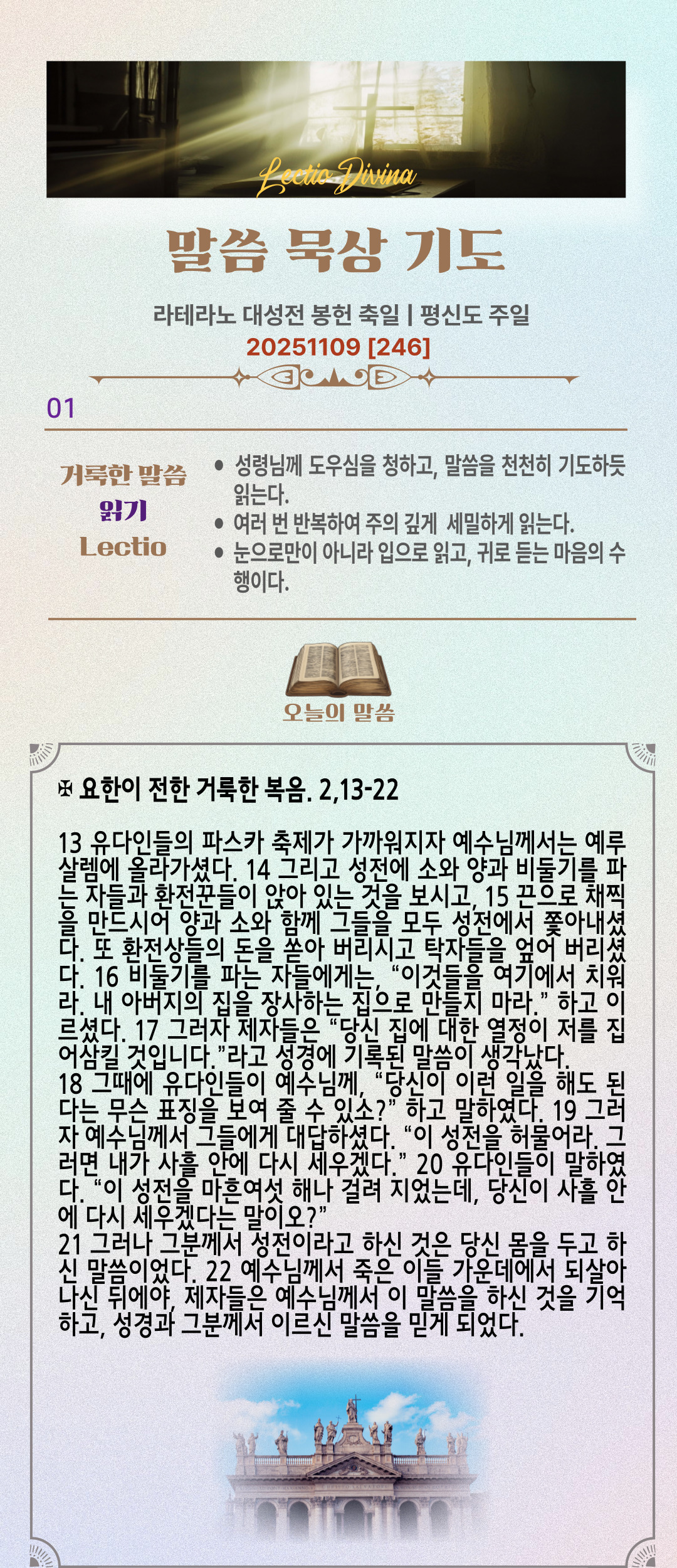 말씀묵상기도 LECTIO DIVINA [246] 20251109 라테라노 대성전 봉헌 축일