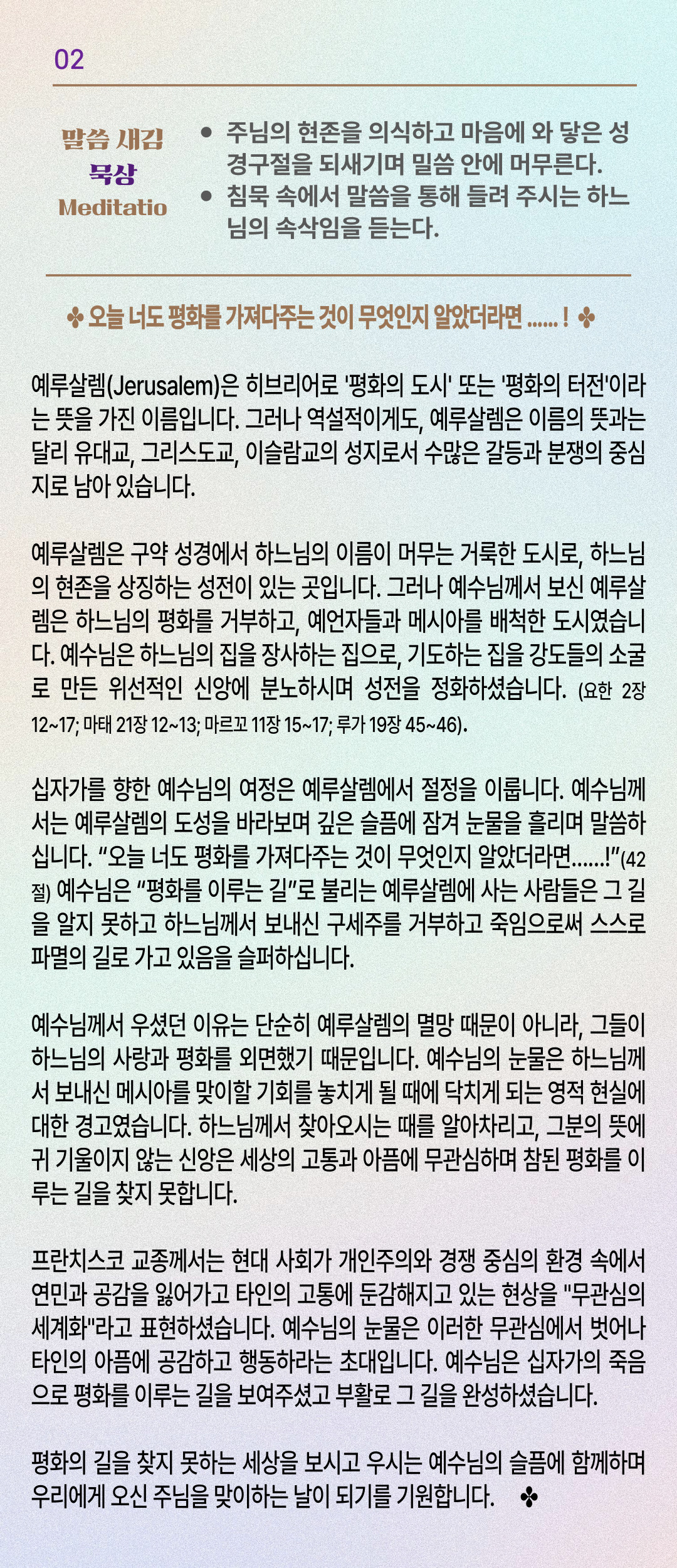 말씀묵상기도 LECTIO DIVINA [257] 20251120 연중 제33주간 목요일